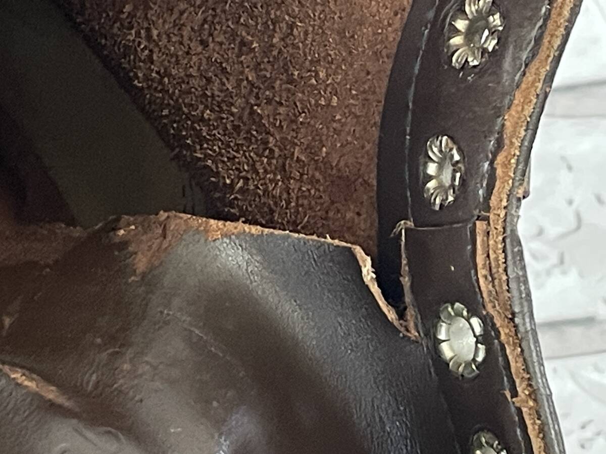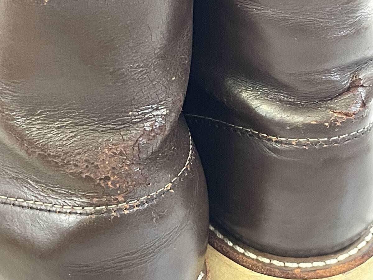 かかと部分にひび割れ、キズ、表面めくれ、シワ、型崩れ、ソール減りがあります。