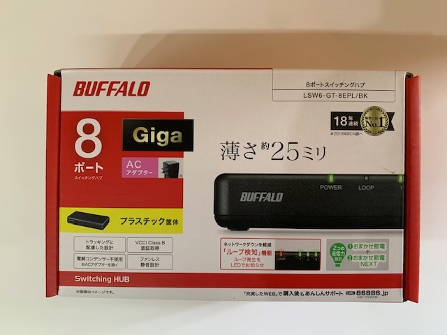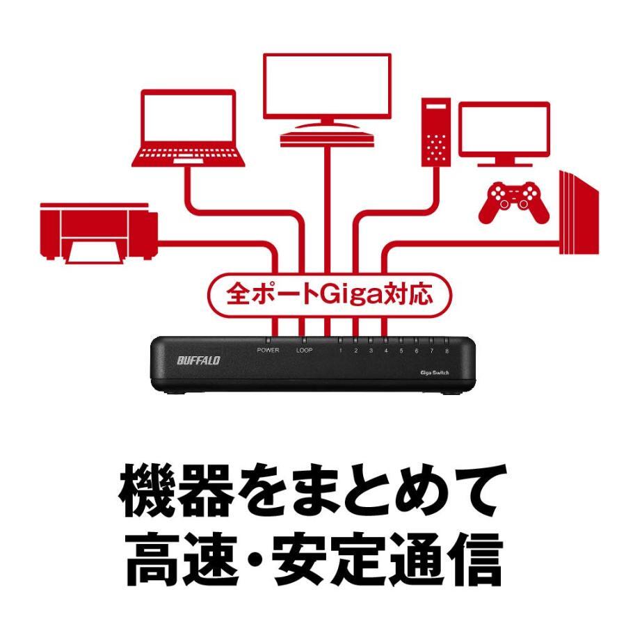 BUFFALO Giga対応 プラスチック筐体 AC電源 8ポート LSW6-GT-8EPL/BK ブラック スイッチングハブ ローコストモデル 壁掛