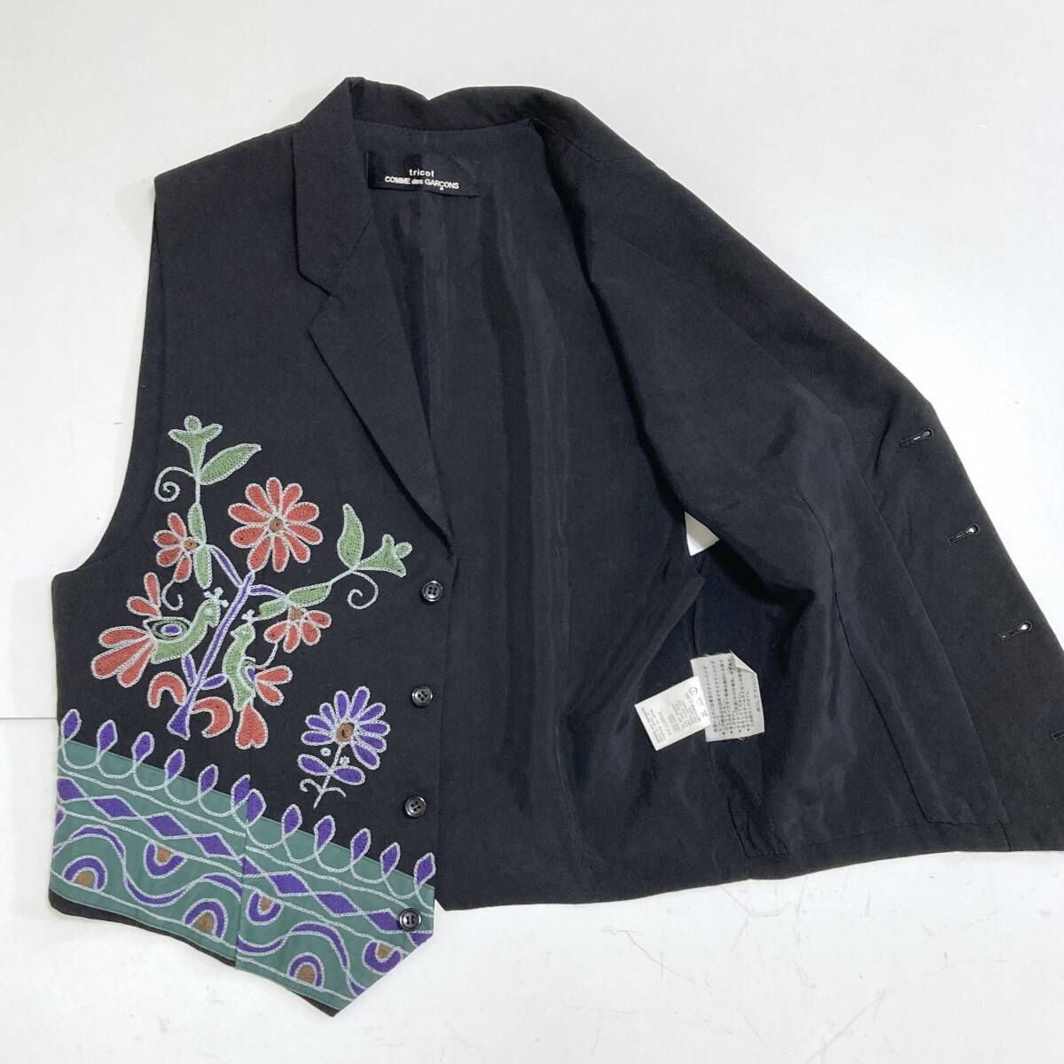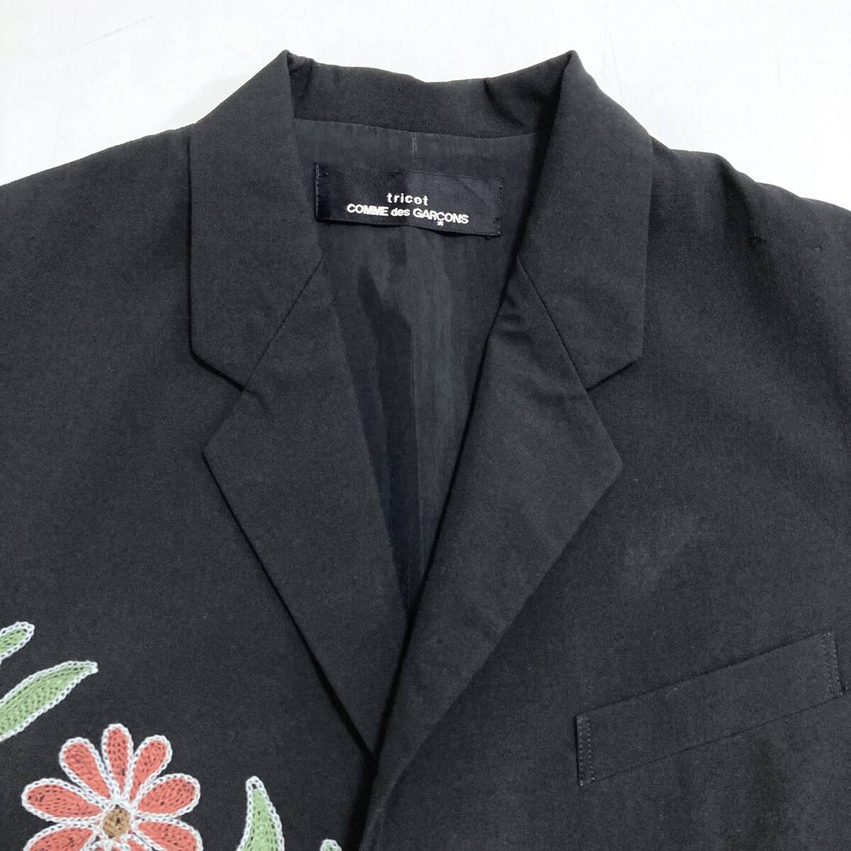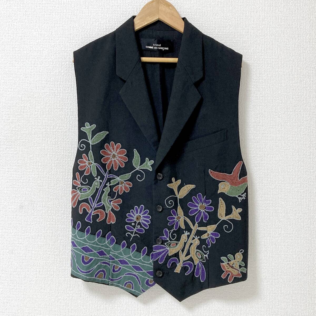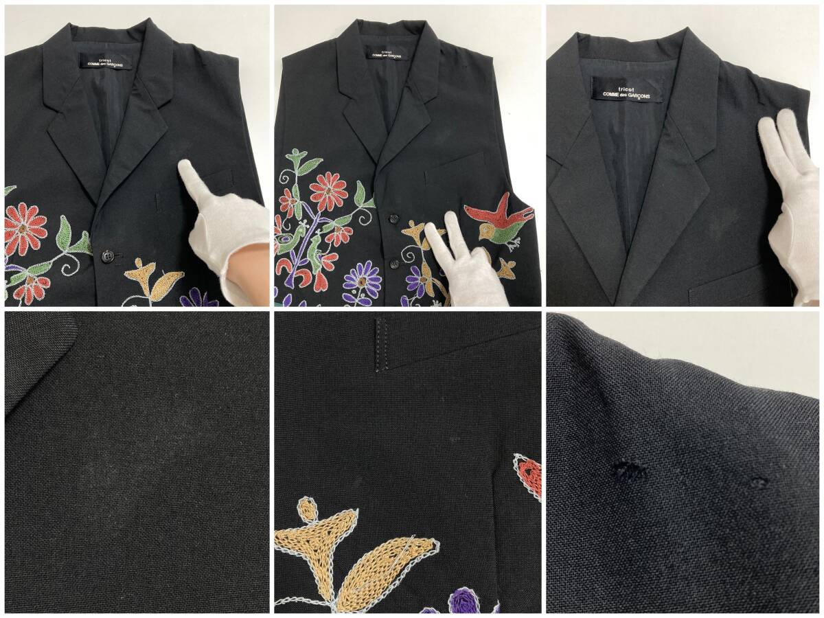 AD1991 tricot COMME des GARCONS ウールギャバ 花 刺繍 ジレ ベスト 黒 トリココムデギャルソン ジャケット 90s VINTAGE archive 5060003