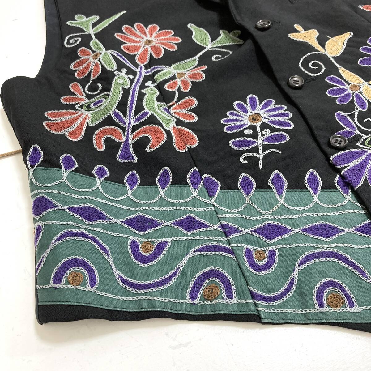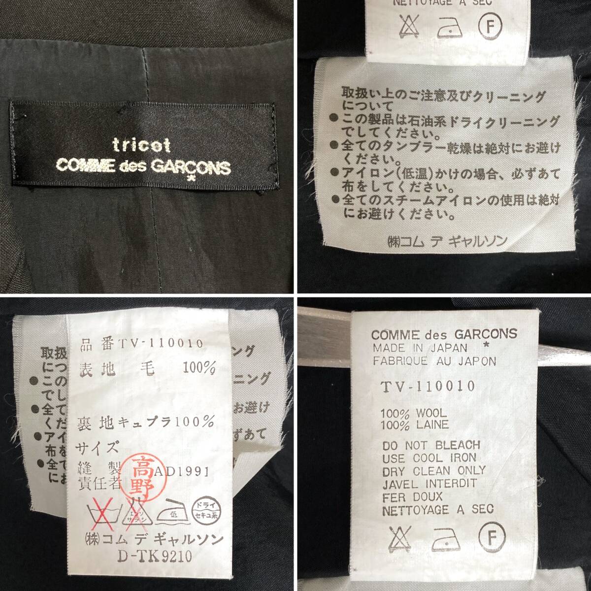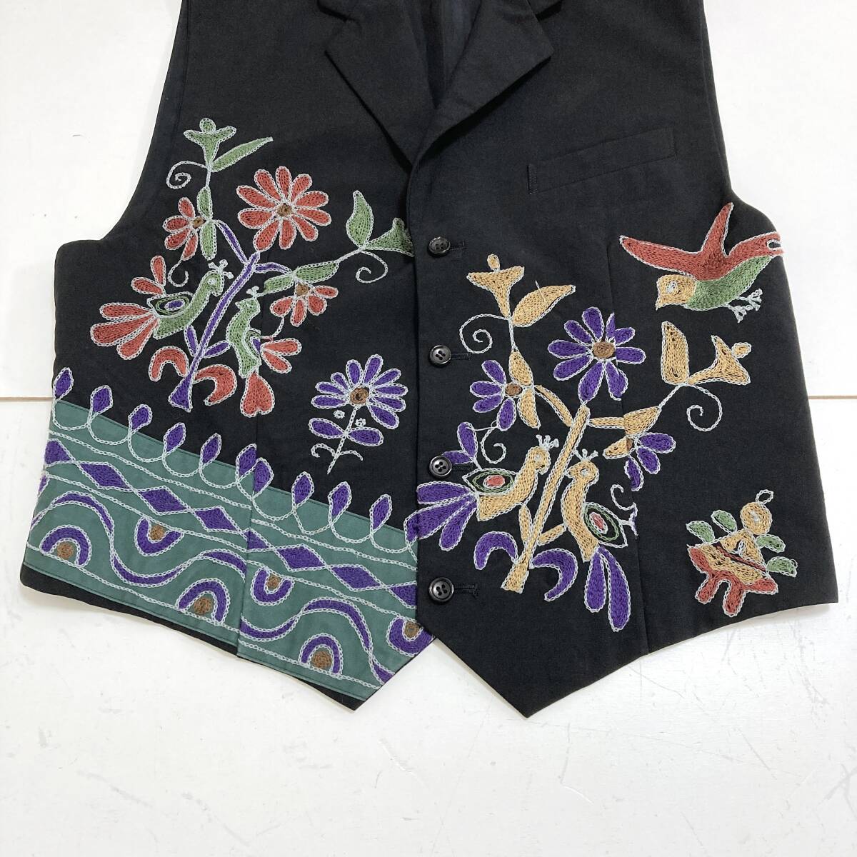AD1991 tricot COMME des GARCONS ウールギャバ 花 刺繍 ジレ ベスト 黒 トリココムデギャルソン ジャケット 90s VINTAGE archive 5060003