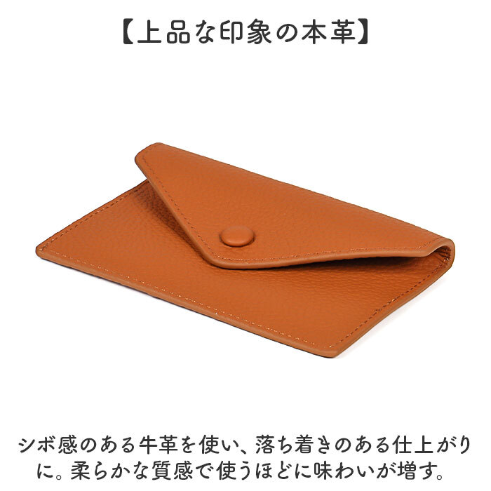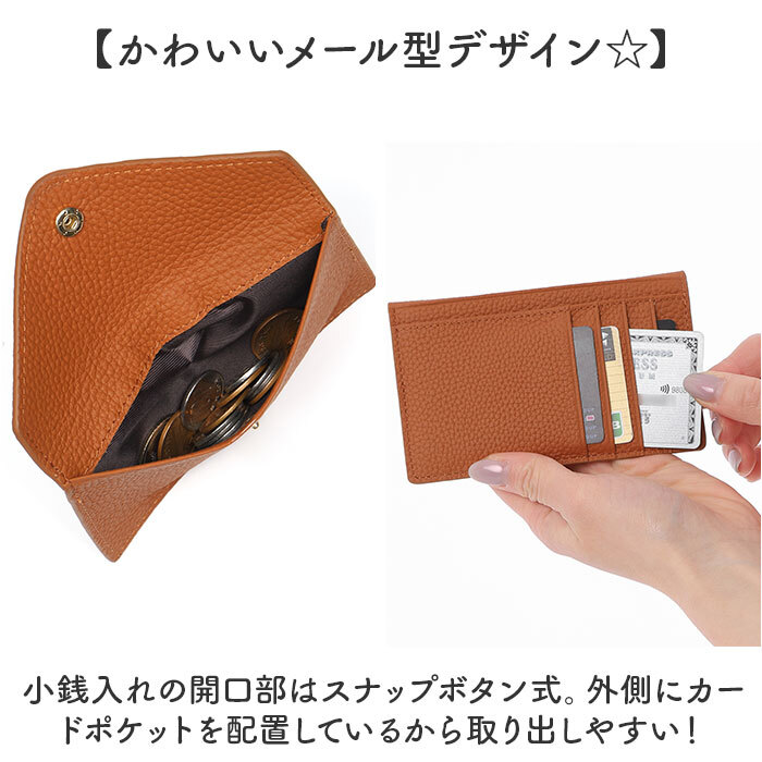 | 商品説明 | ・・【コンパクトにまとめて収納!】 ・シンプルで使いやすい「Melody(メロディー) スリムウォレット」が登場。 ・【上品な印象の本革】 ・シボ感のある牛革を使い、落ち着きのある仕上がりに。柔らかな質感で使うほどに味わいが増す。 ・【かわいいメール型デザイン☆】 ・小銭入れの開口部はスナップボタン式。外側にカードポケットを配置しているから取り出しやすい! ・【使い勝手の良いサイズ感と収納力】 ・バッグに入れてもかさばらないスリムな形状。キャッシュレス派の方にもおすすめ。 ・【ユニセックス仕様】 ・無駄のないシンプルなデザインと落ち着きのあるカラー。幅広い年代で使えるので、ギフトにもおすすめ。 ・【ポケット仕様】 ・カードポケット×4、フリーポケット×2 |