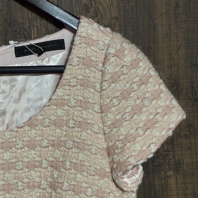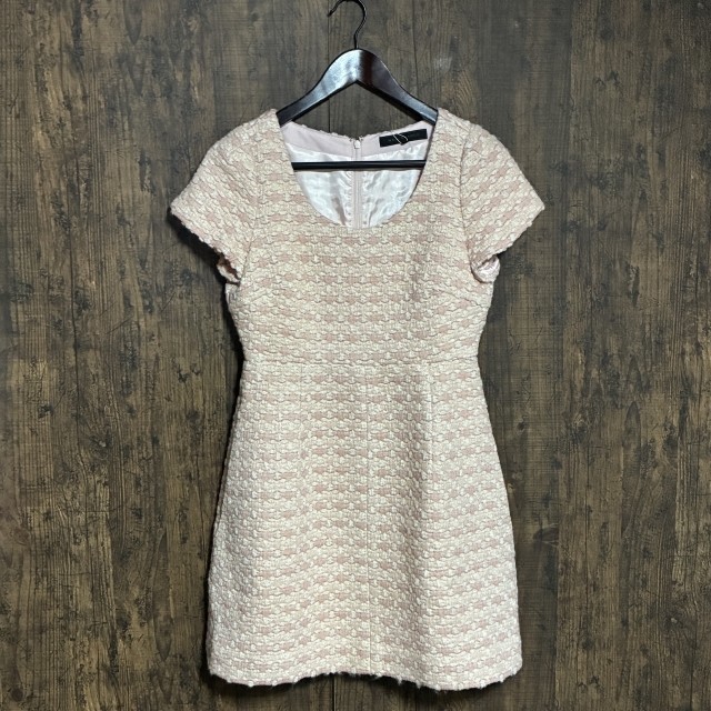 A350◇MERCURYDUO | マーキュリーデュオ ツイードワンピース べビーピンク×アイボリー レディース Fサイズ 中古品