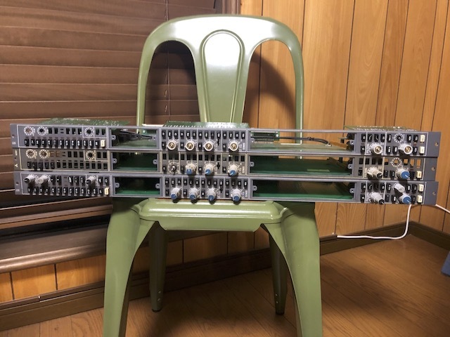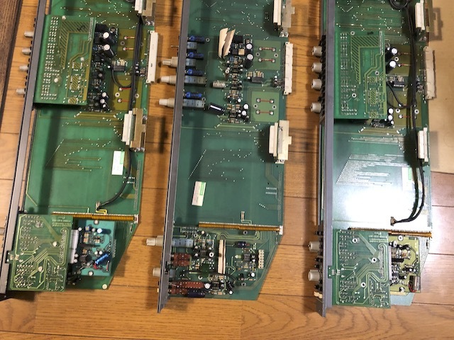 三菱 Quad Eightのチャンネルストリップモジュールの残骸の3枚セットですです。機種は判らないため写真で判断をお願いします。 動作品のミキサーを解体して倉庫に保管されていたものですが、動作確認ができないため、ノークレーム、ノーリターンのジャンク扱いでお願いします。