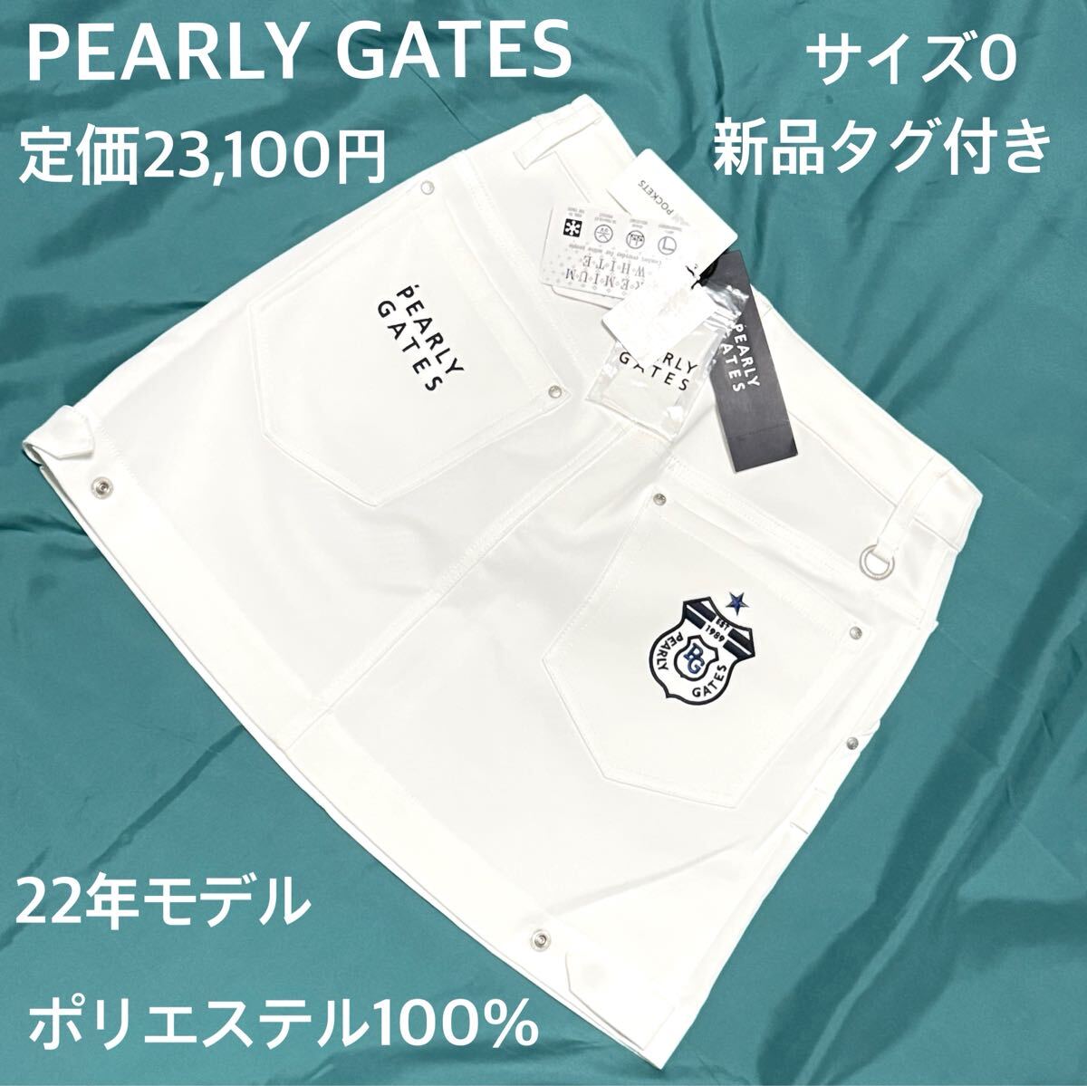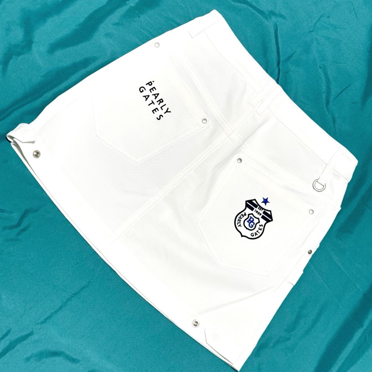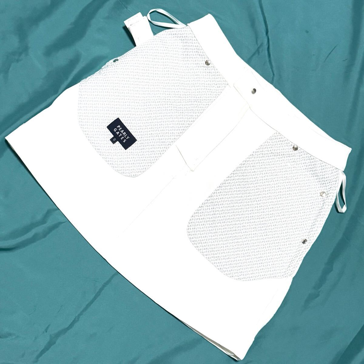 パーリーゲイツの22年モデル、爽やかな白ベースで夏ゴルフに最適!タグ付き未使用品。ポリエステル100%で軽くて動きやすく、人気のサイズ0。定価23,100円の高級スカートが今だけお得に!