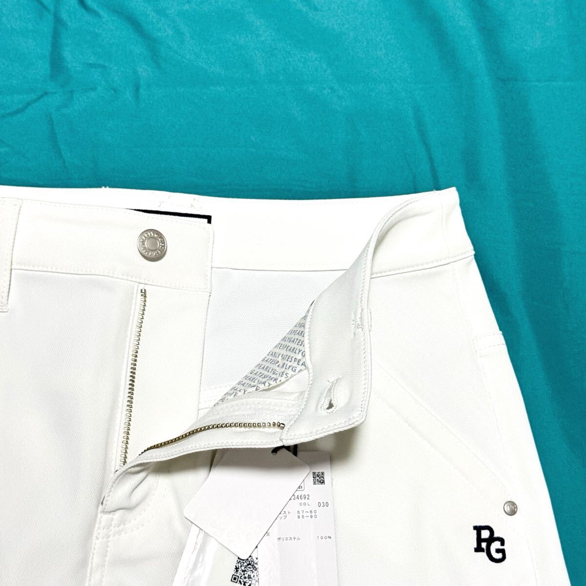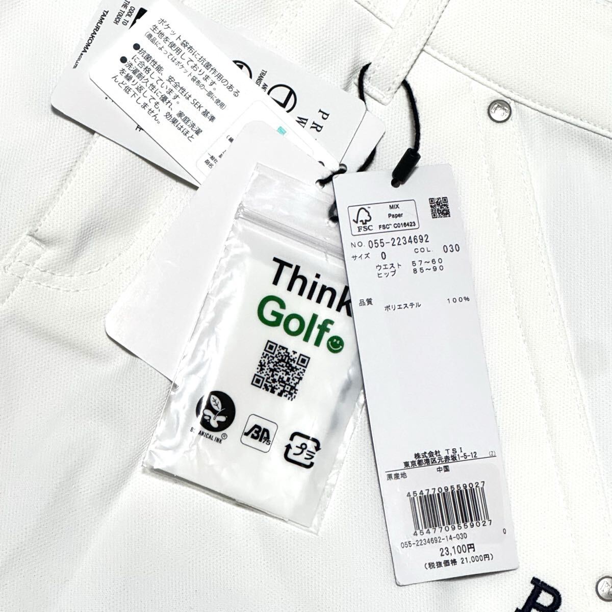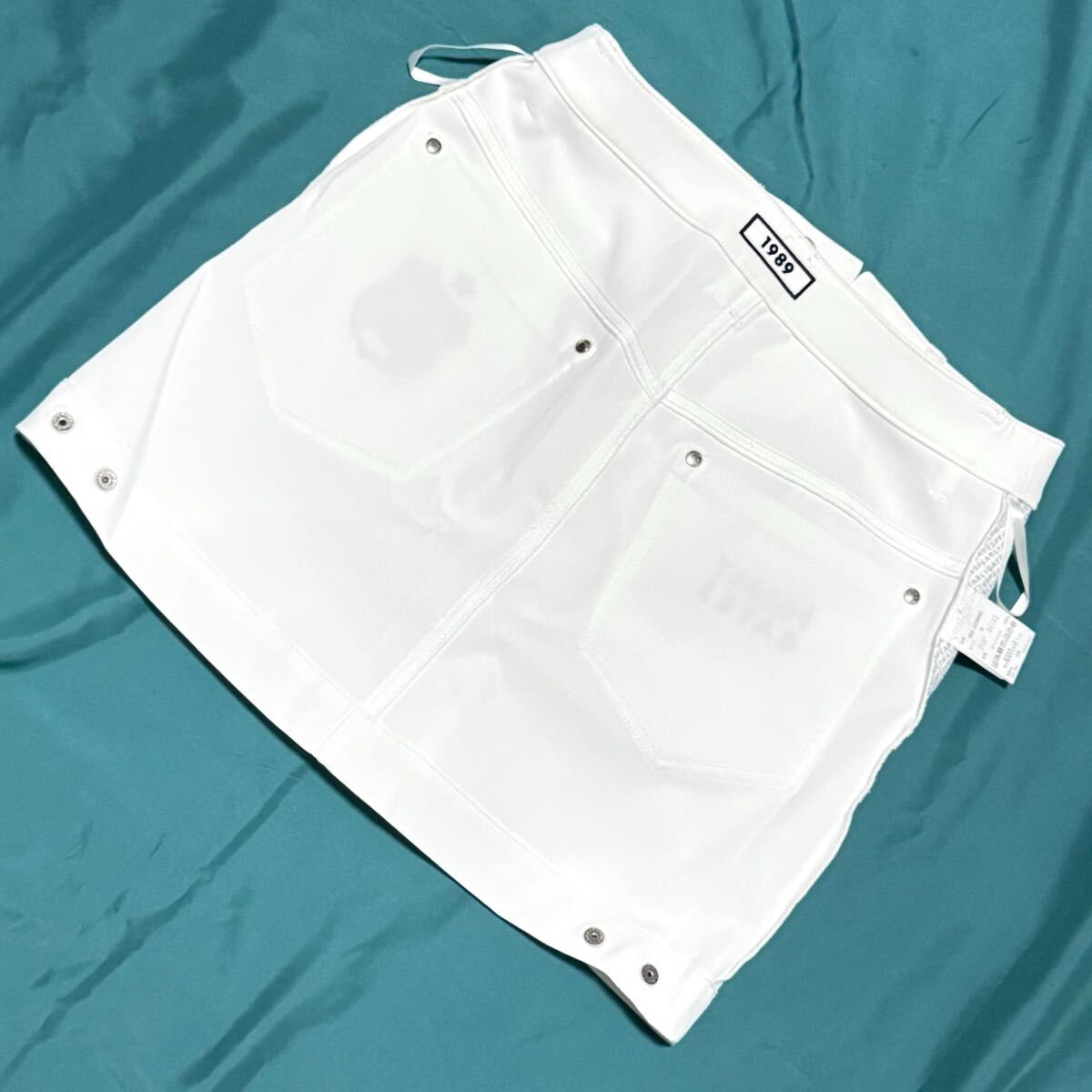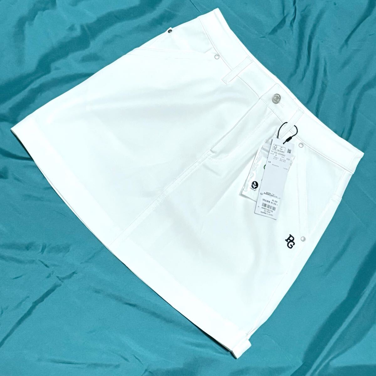 パーリーゲイツの22年モデル、爽やかな白ベースで夏ゴルフに最適!タグ付き未使用品。ポリエステル100%で軽くて動きやすく、人気のサイズ0。定価23,100円の高級スカートが今だけお得に!