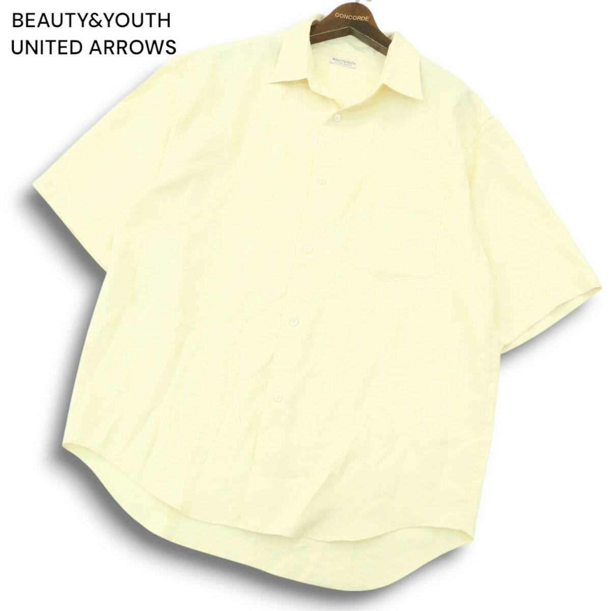 BEAUTY&YOUTH ユナイテッドアローズ 春夏 オーバーサイズ★ トリアセテート 半袖 シャツ Sz.XL メンズ 黄色 大きいサイズ