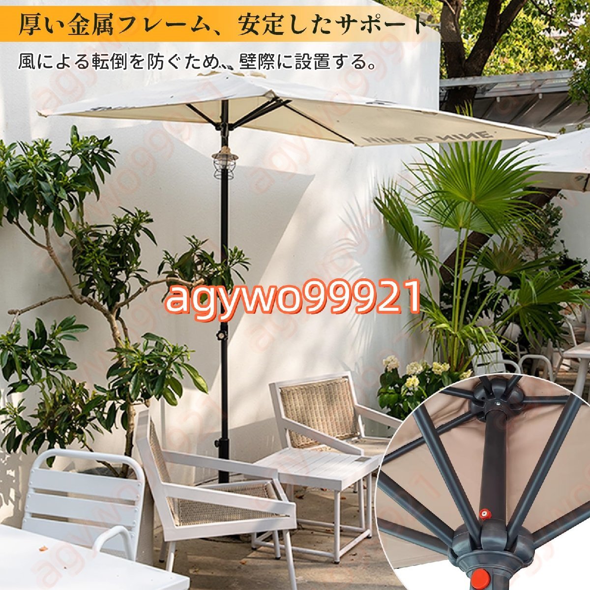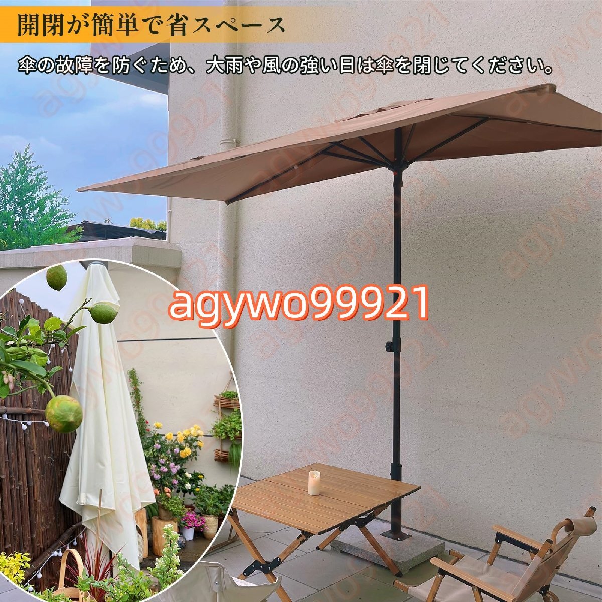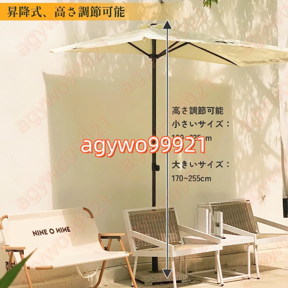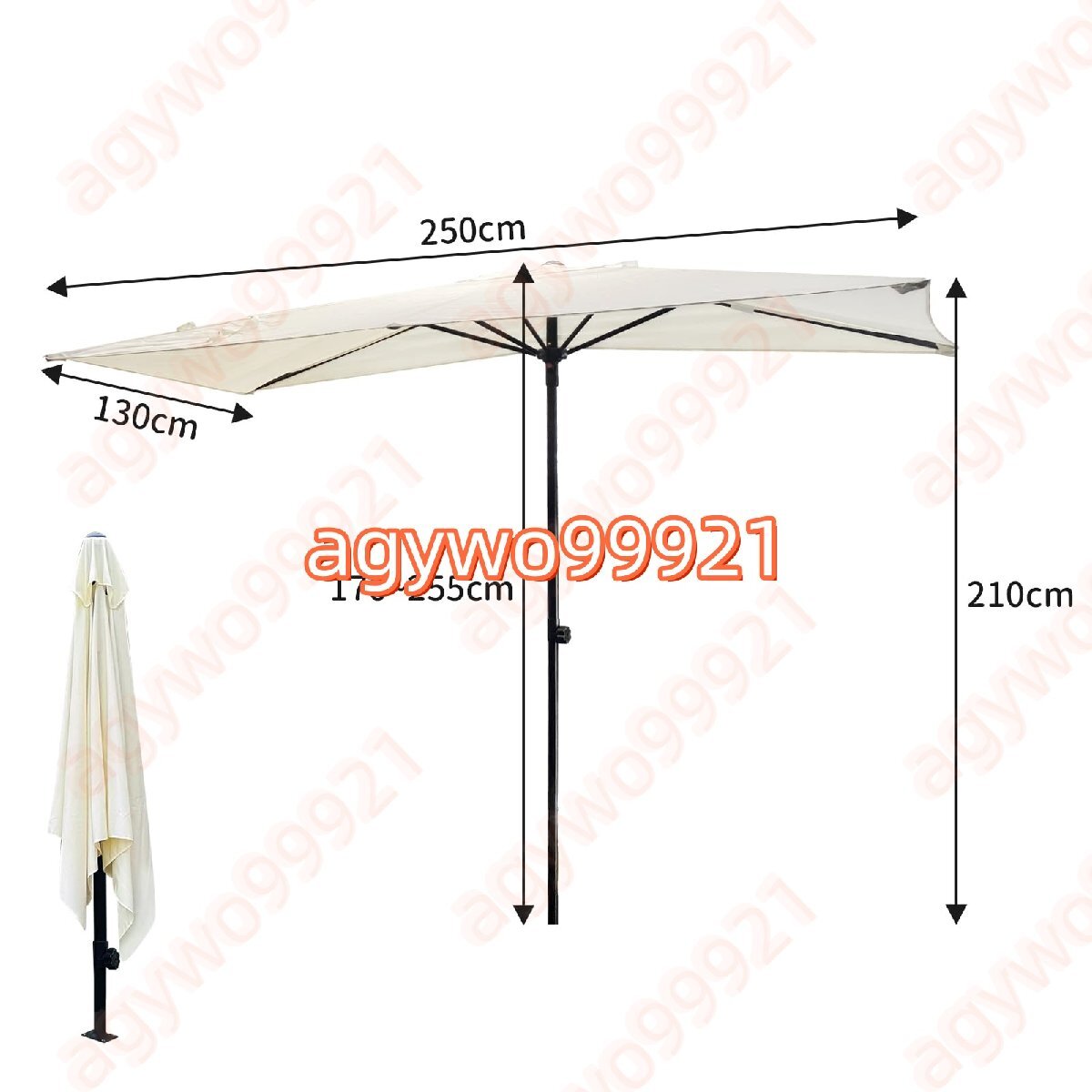 アウトドアパラソルは、お客様に快適なアウトドアライフを提供することに重点を置いています。耐久性のある生地と金属フレームで作られており、日光や小雨にも耐えられます。日除け パラソルあれば、日焼けをすることなく屋外で良い天気を楽しむことができます。? 特徴: 屋外パティオパラソルを壁に立てかけると安定します。 家の中に日光が当たるのを防ぐために、バルコニーに日陰を作ります。 5本骨は丈夫で折れにくいので、日焼け防止、紫外線対策にもなります。 この屋外 パラソルのリビングスペースを美しくすることもできます。? 仕様:傘の種類:ガーデンパラソル、釣り傘 パラソル、テラスパラソル傘生地:ポリエステル生地(UV、防雨)紫外線防御:UPF50+サイズ:250×130cm、200×100cm。 (高調整可能)スチールロッド直径:38mm? 注意:1. この商品には傘ベースは含まれておりません。2. 手作業による測定のため、傘のサイズに1?3 cmの誤差が生じるのは正常です。撮影方法や光の違いにより、色が若干異なる場合があります。3. 傘の寿命を延ばすために、風の強い日や雨の日には傘を閉じてください。
