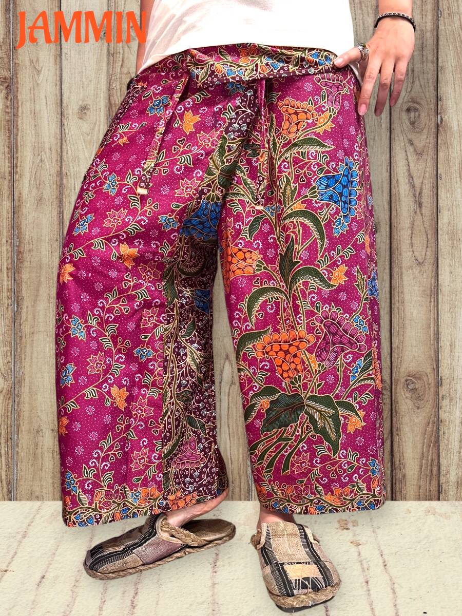 バティック花柄タイパンツ アジアン ヒッピー エスニック 花柄 タイパンツ