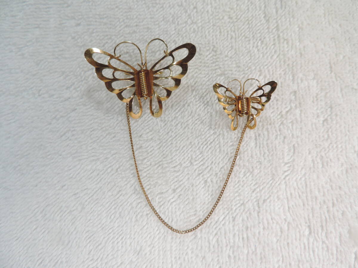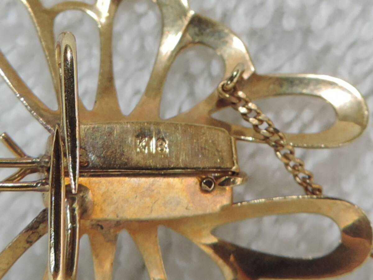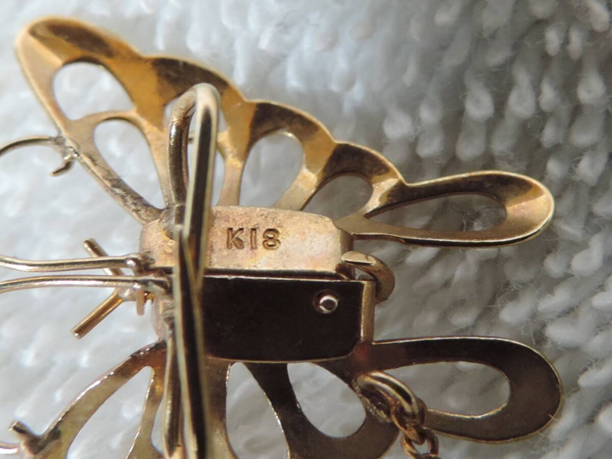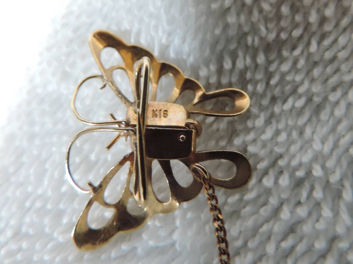 【質問欄より値下げ交渉可】美品・金K18 蝶ピンバタフライブローチ・大物方縦28ミリ、横38ミリ・小物方縦18ミリ、横22ミリ・重さ:約3.60g