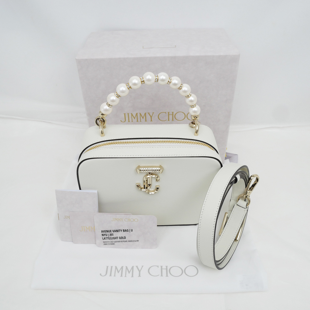 【名東】ジミーチュウ AVENUE VANITY BAG 2WAY ショルダーバッグ ハンド フェイクパール付 LATTE レディース その他【未使用】