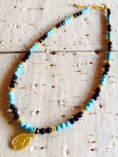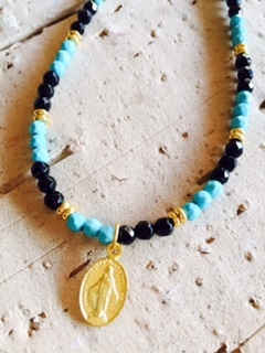新品 ネックレス ターコイズXブラック ラップブレス 革 ターコイズ