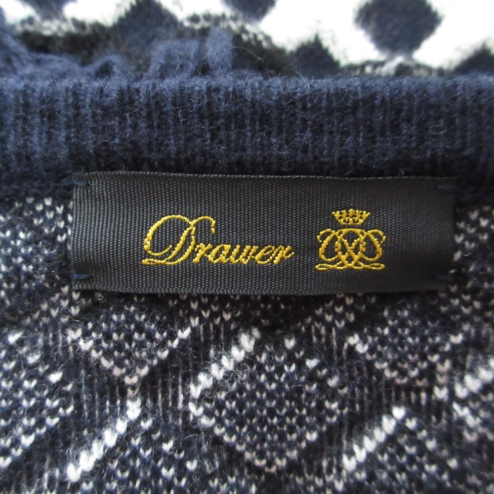 美品 Drawer ドゥロワー 12Gムートンポケットニットジャケット ネイビー