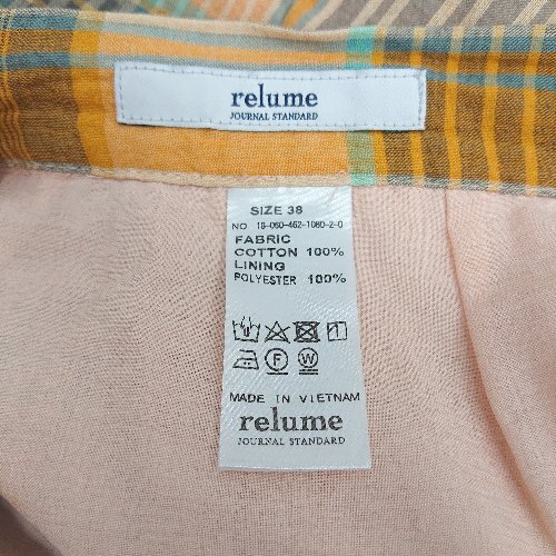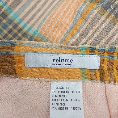 ◇ ⊂ JOURNAL STANDARD relume チェック柄 ロング タイト スカート サイズ38 オレンジ系 レディース E