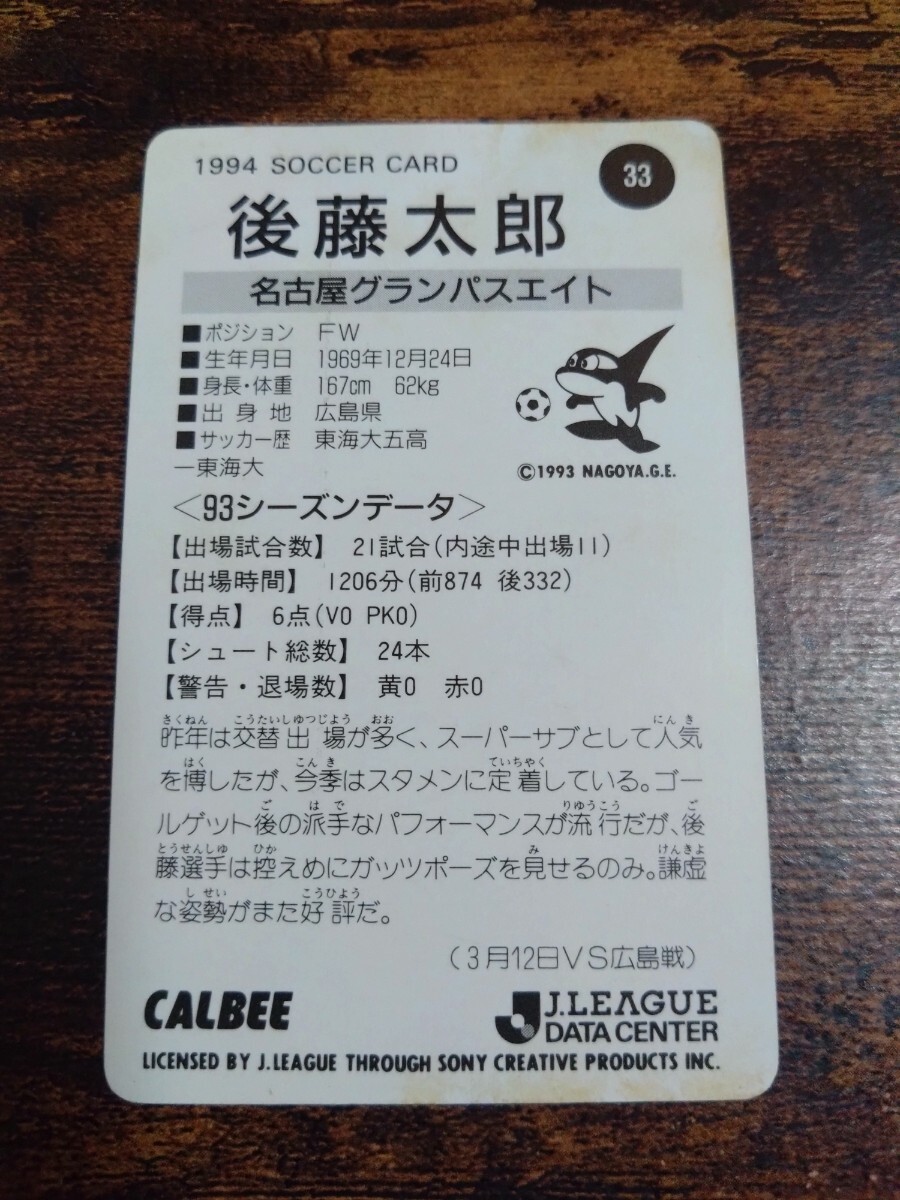 カルビー Jリーグチップス カード 1994 No.33 後藤太郎 名古屋グランパスエイト