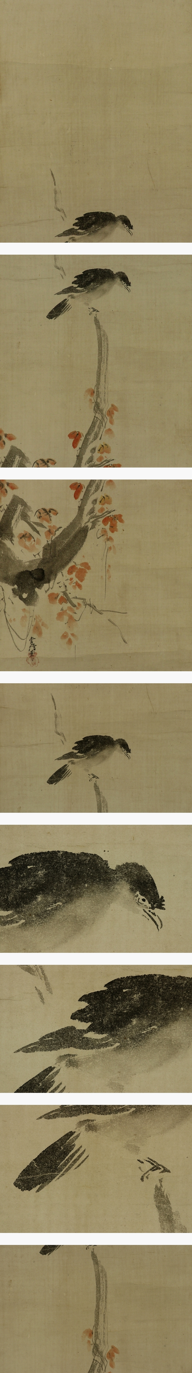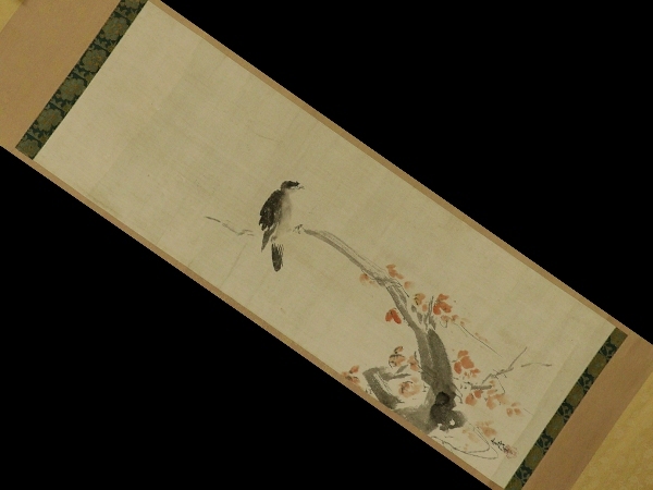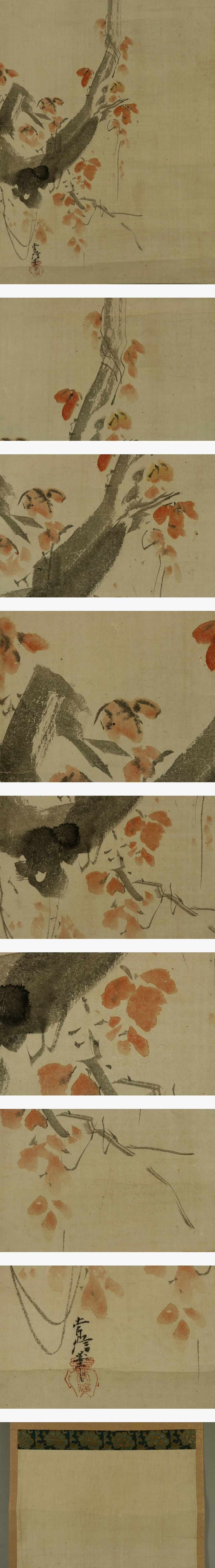 狩野常信 かのう-つねのぶ(1636-1713) 江戸時代前期-中期の画家。 寛永13年3月13日生まれ。狩野尚信の長男。慶安3年(1650)父の跡を継ぐ。 御所障壁画制作に参加し,宝永年間には狩野派の最高指導者として紫宸殿の「賢聖障子」を描く。 宝永6年法印。木挽町狩野家隆盛の基礎を固めた。正徳3年1月27日死去。78歳。 京都出身。通称は右近。号は養朴,古川叟。 本紙は、染み、汚れ、強い折れ、皺、虫食い痕、擦れがあります。 表装は、染み、汚れ、折れ、皺、虫食い、ほつれ、ヤケ、 軸先に軽い汚れと擦れとヒビがあります。 【サイズ】 作品 横約35cm×縦約104cm 表装 横約38.5cm×縦約195cm |