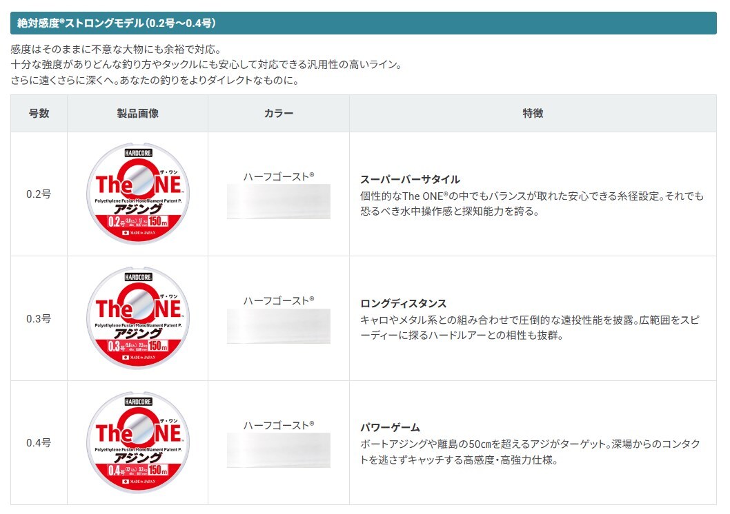 The ONE アジング 150m  ザ・ワン アジング 150m0.2号カラー ハーフゴースト標準直径(mm) 0.07