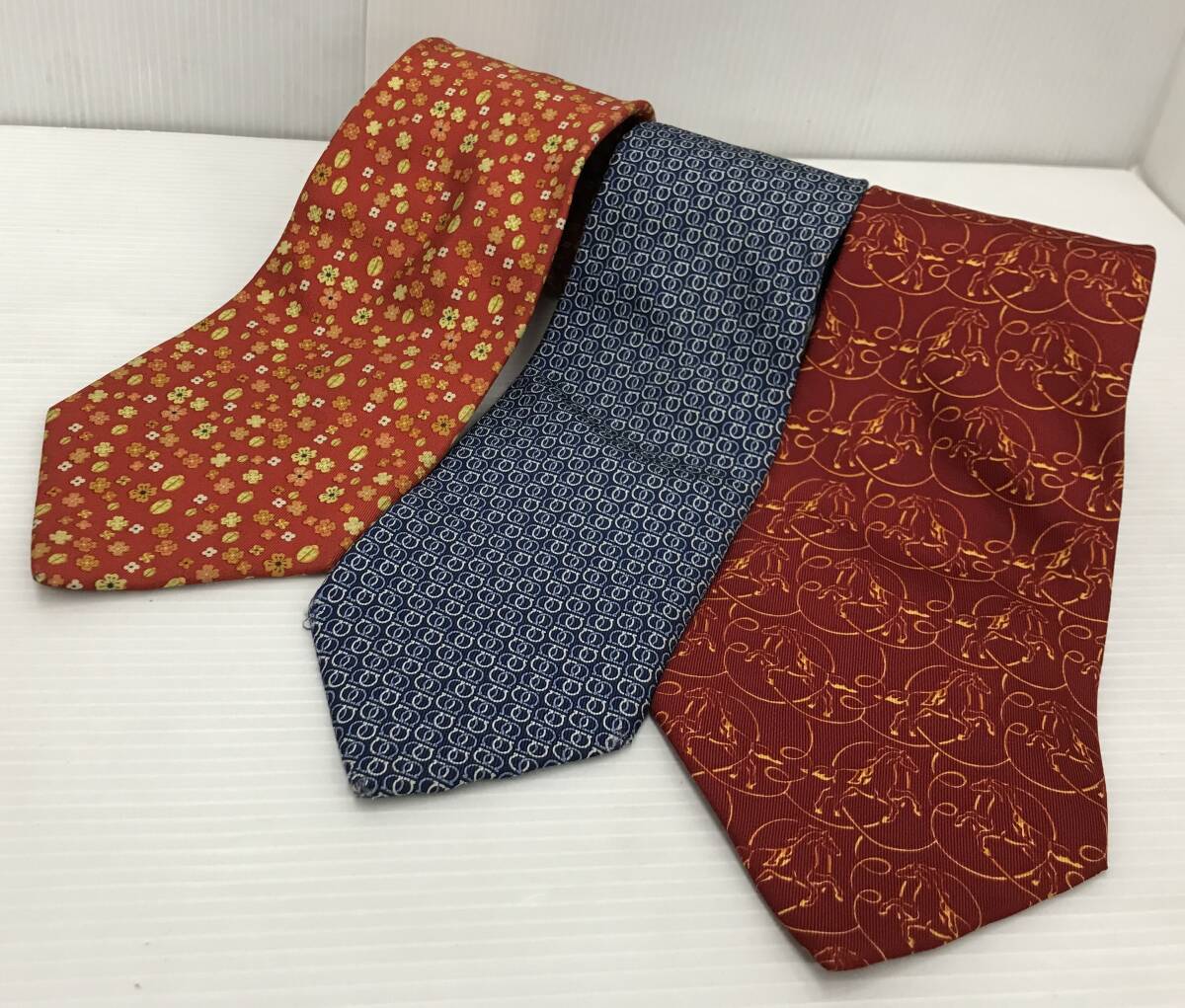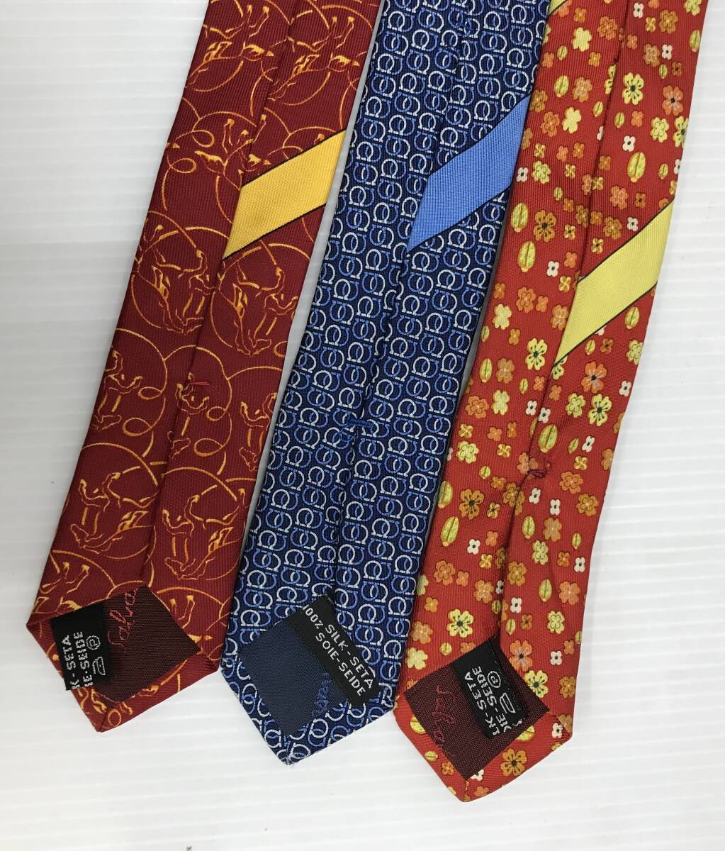 (中古品)Salvatore Ferragamo/サルヴァトーレフェラガモ ネクタイ3点セット/レッド・ブルー・レッド シルク100%/本体のみ | ||