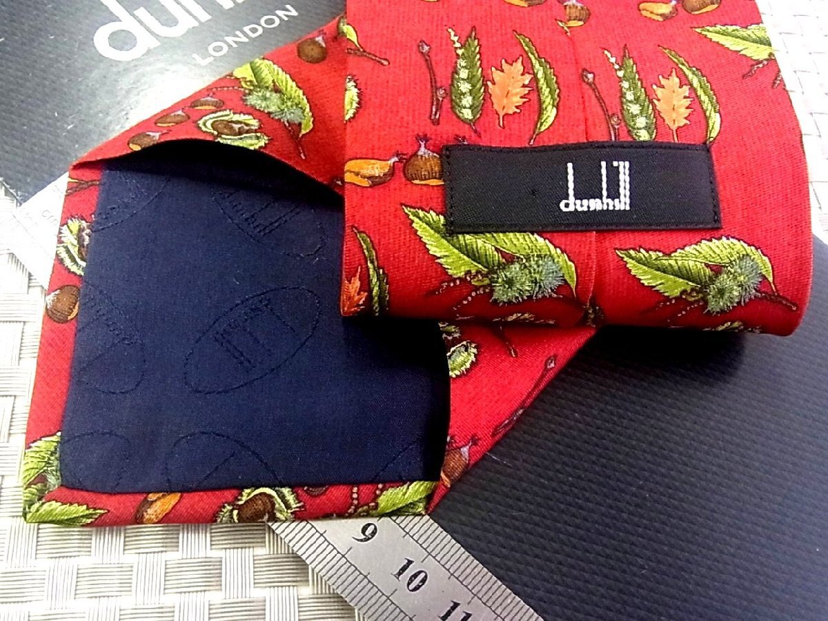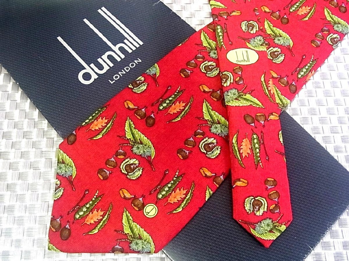 ★4386S★新品【栗 葉っぱ 植物 dロゴ 柄】ダンヒル【dunhill】ネクタイ