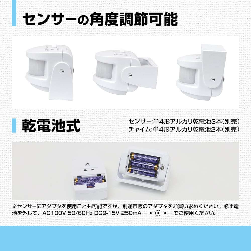 ワイヤレスチャイム 赤外線センサーで 人の動きを検知 防犯 玄関 受付 店内 介護などに