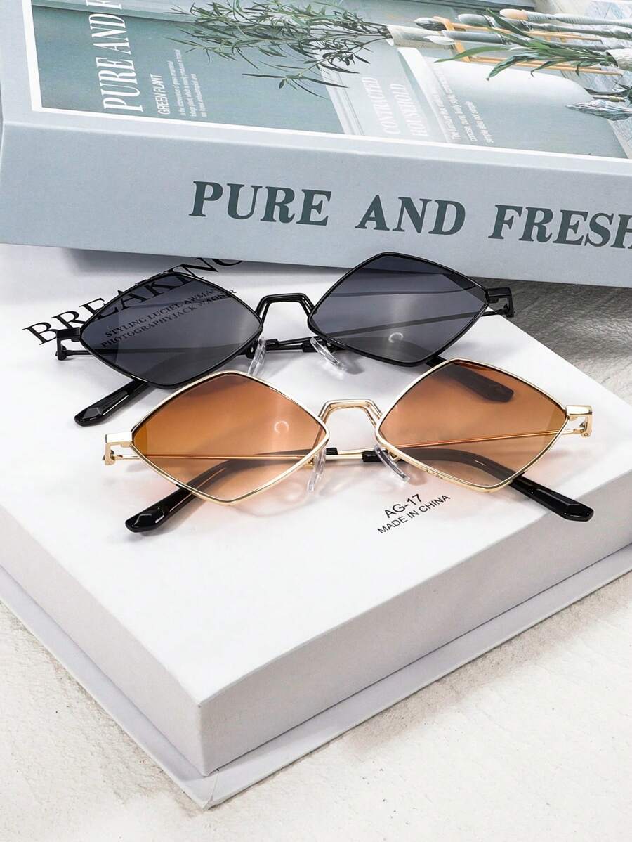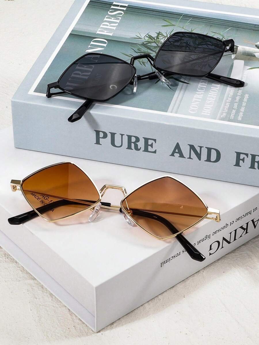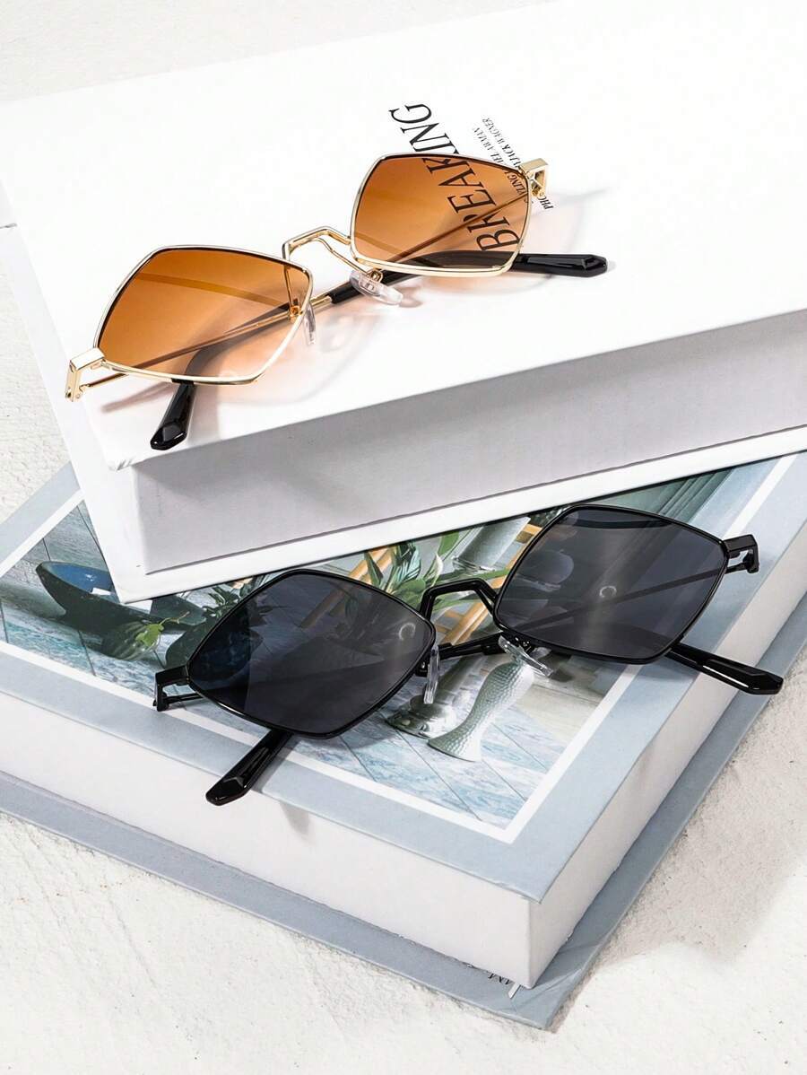 レンズカラー : 2PCS(ゴールドフレームグラデーションティー+ブラックフレームブラックグレー)