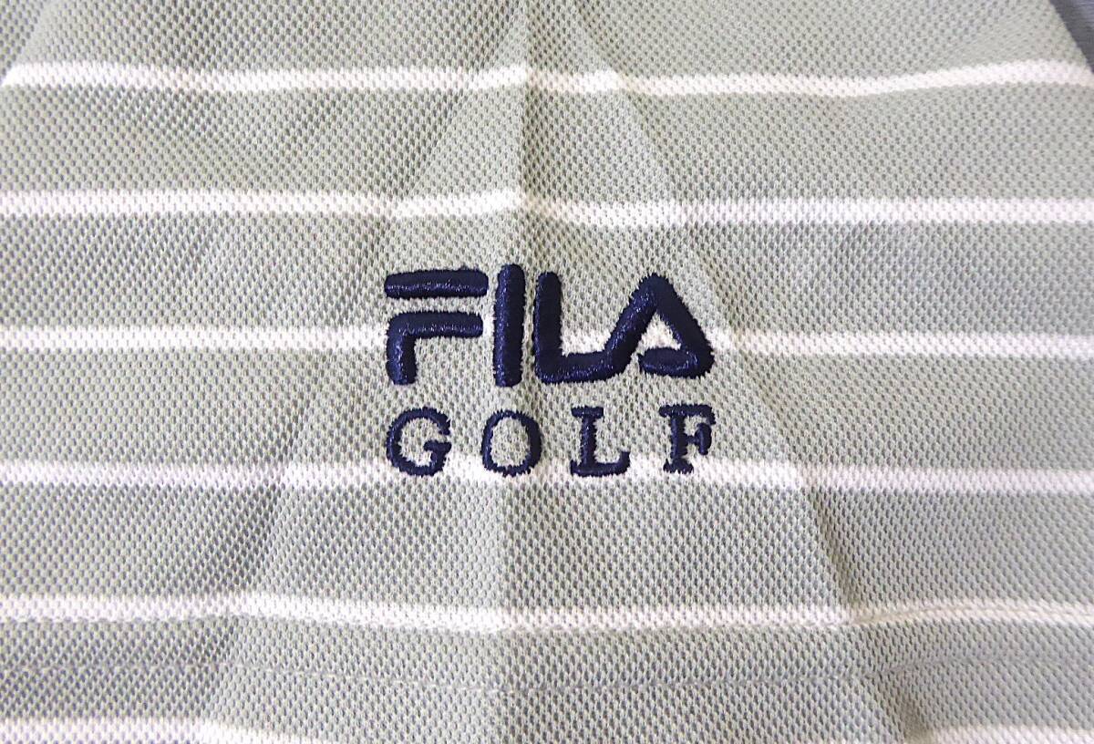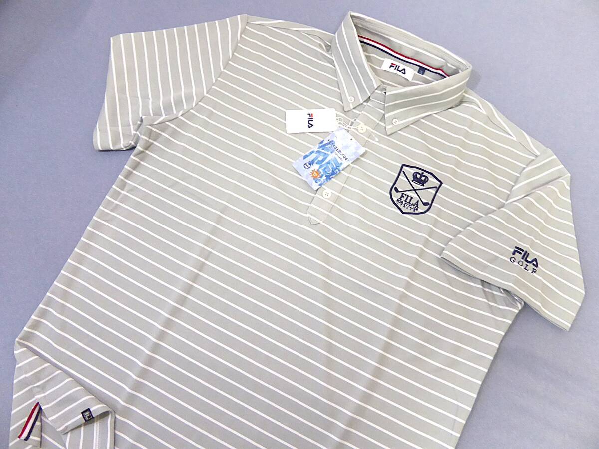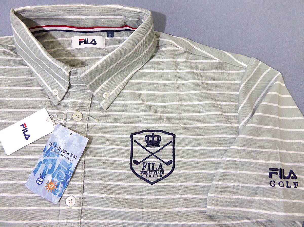 FILA GOLF フィラ ゴルフ 保温冷感 UVカット ストレッチ ボーダー柄 ボタンダウン半袖ポロシャツ 3L 灰