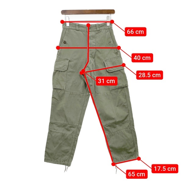 | 実寸法 | ボトムス実寸 ウエスト:66cm 股上:31cm 股下:65cm もも幅:28.5cm 裾幅:17.5cm |