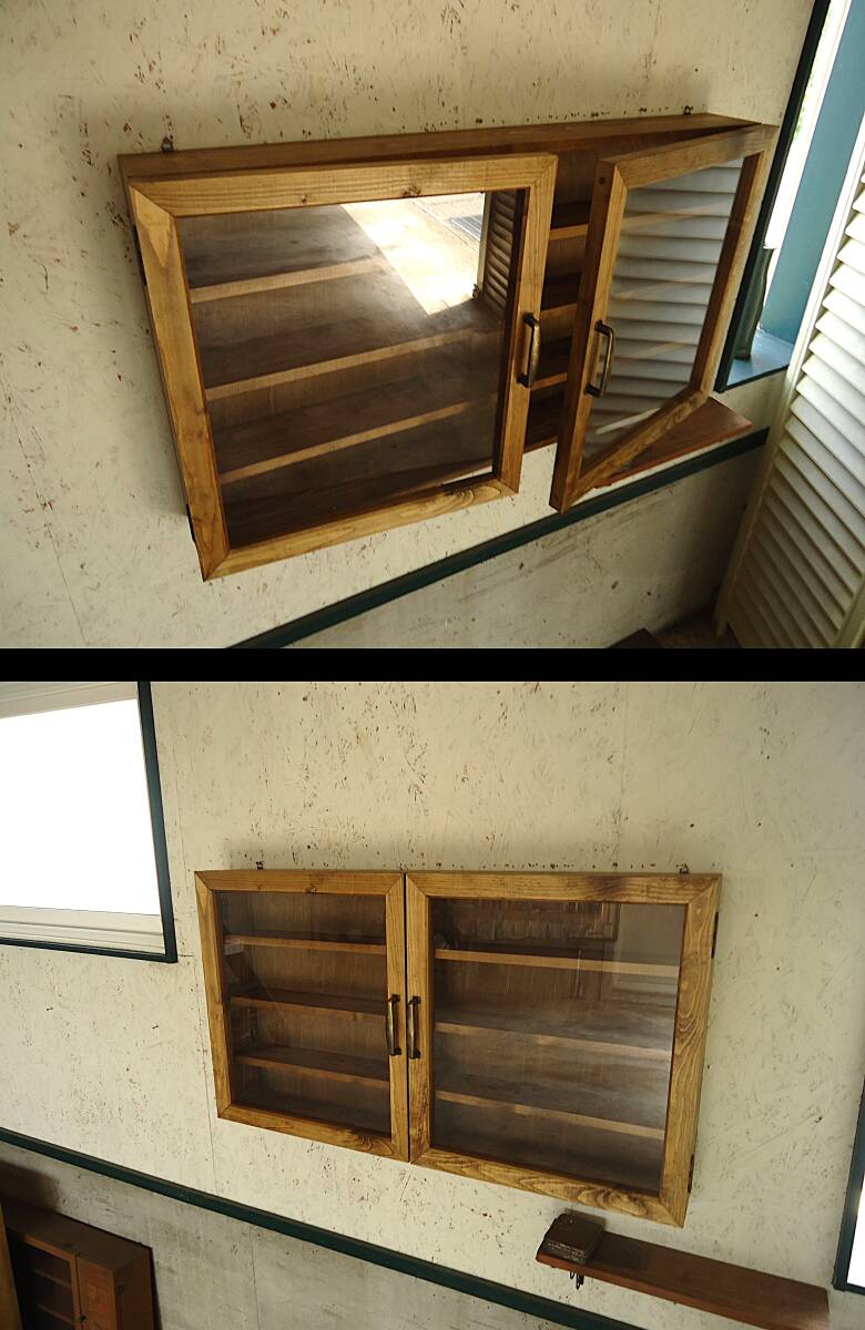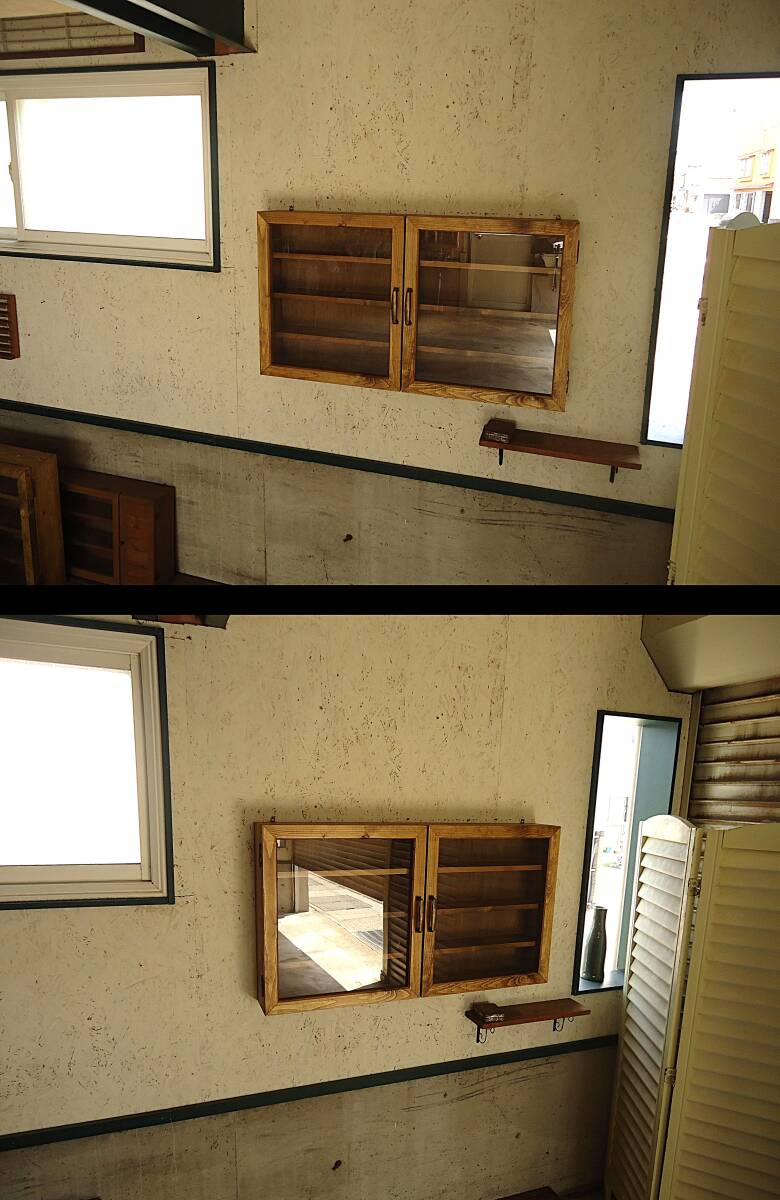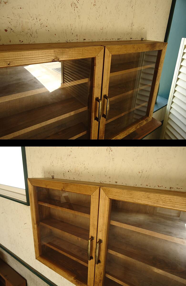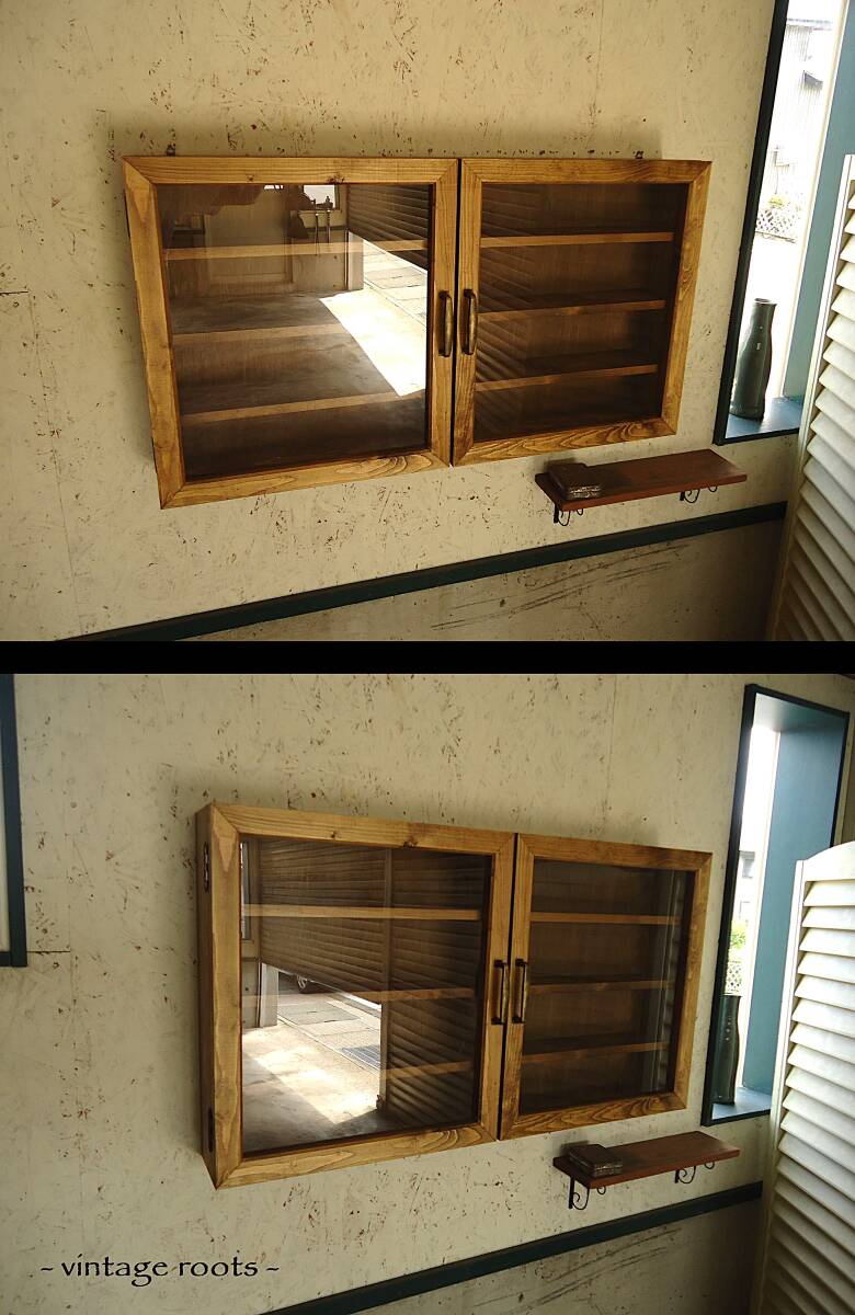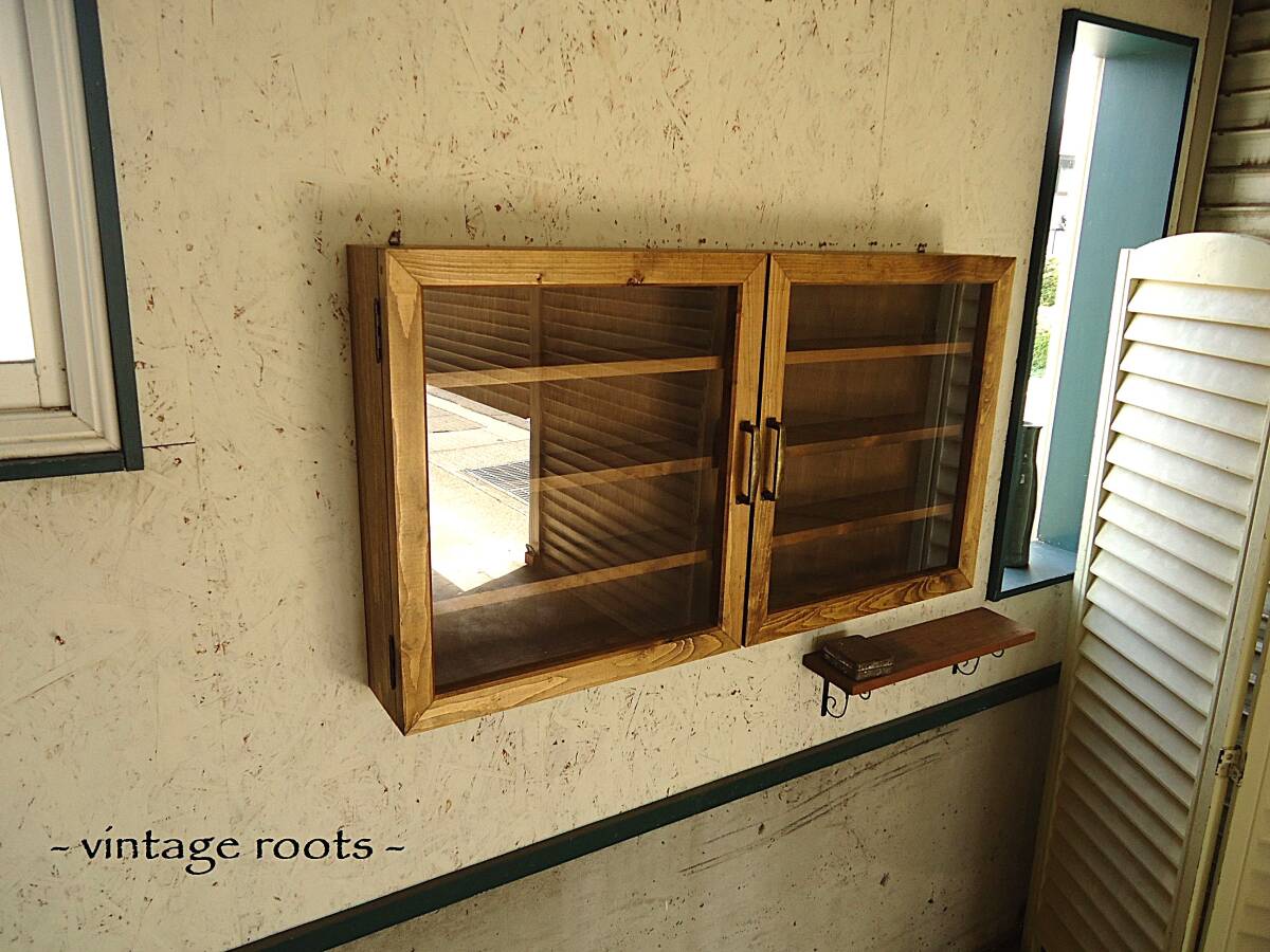 -vintageroots- 26壁掛けコレクションケース < パイン無垢材 アンティーク シェルフ キャビネット 飾り棚 収納 カフェ >