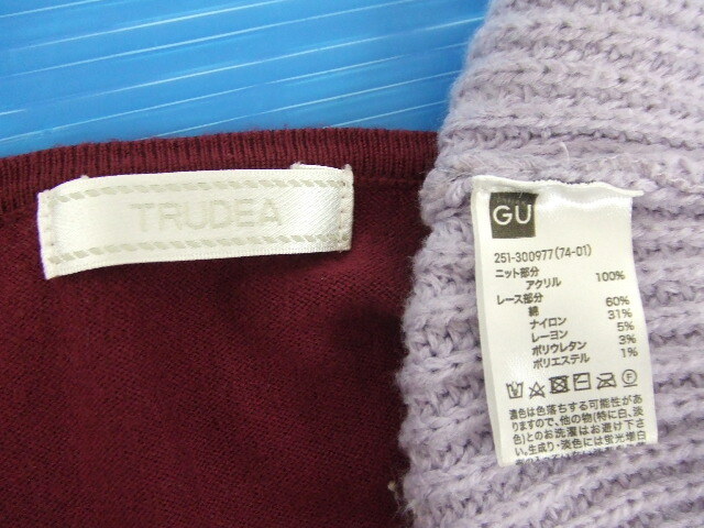 ①TRUDEA/カーディガン/ボルドー系 ②GU/セーター/花柄・紫系