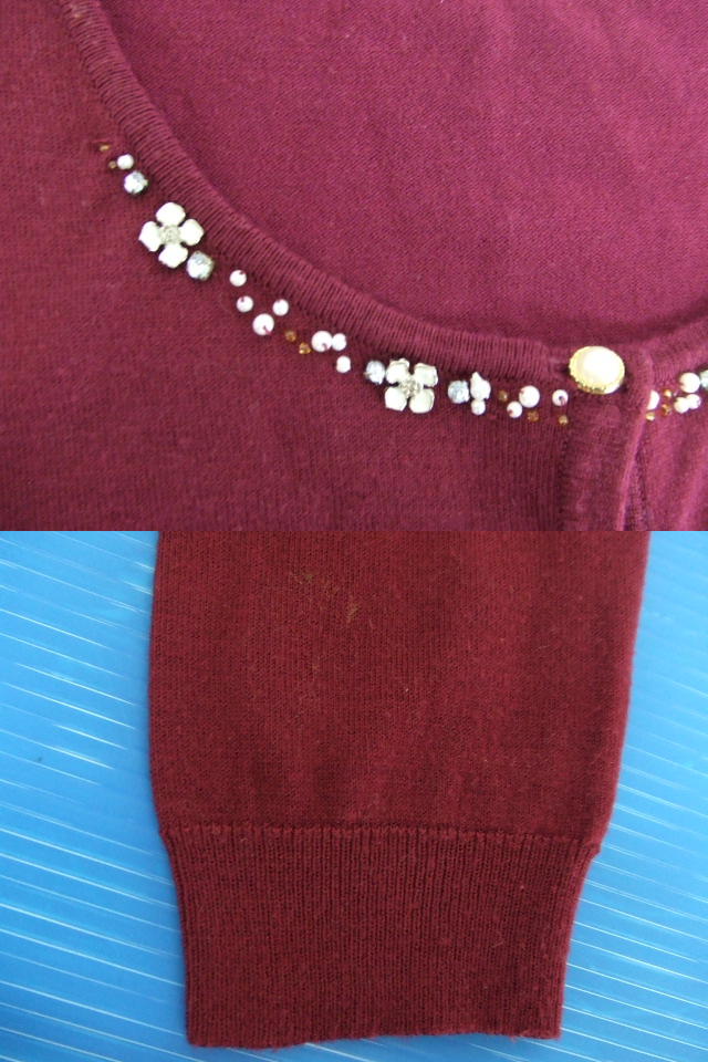 ・①カーディガンのビーズが欠損が見られます。