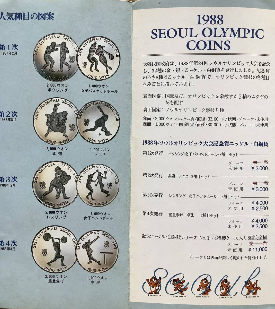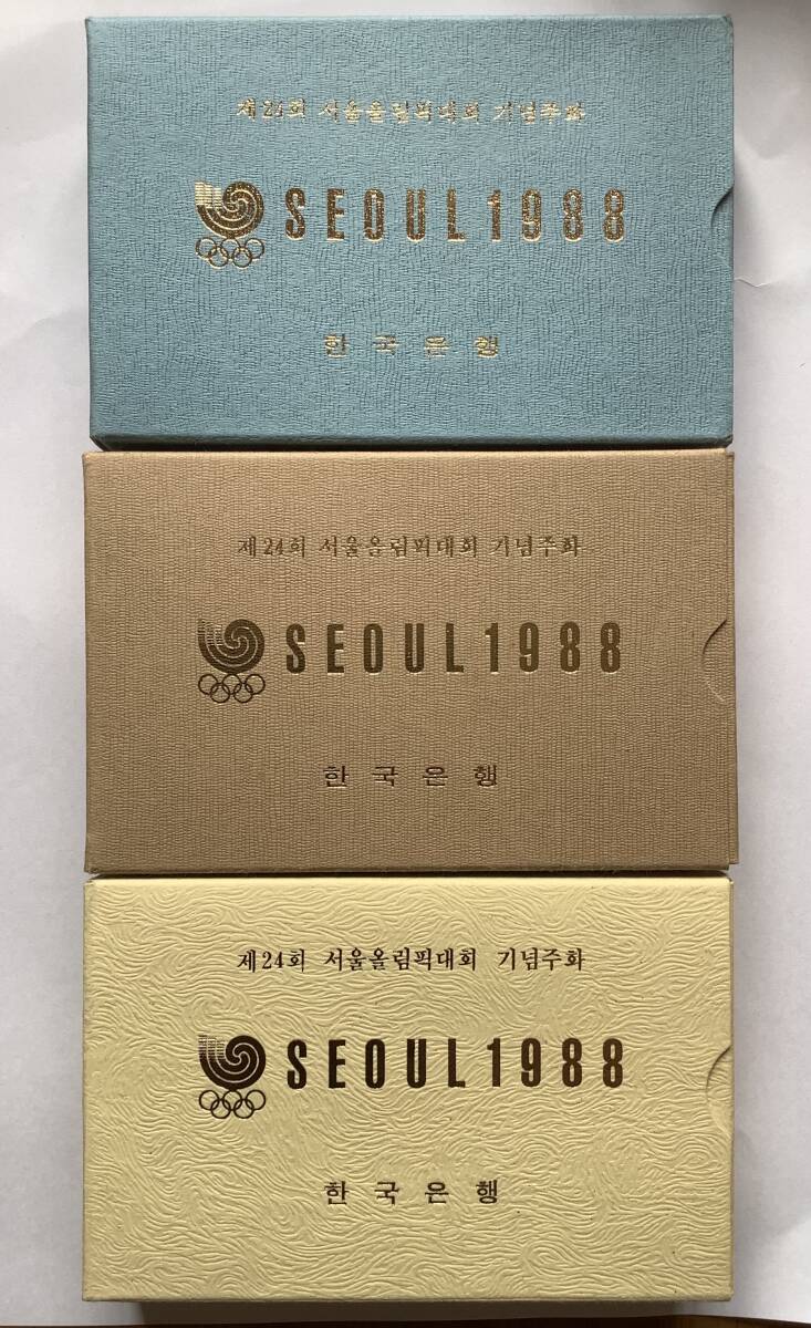 韓国 1988年ソウルオリンピック第1次、第3次、第4貨の計6枚公式記念コイン、プルーフ、保証書付き、オリジナル化粧箱入り、ワンオーナー商品。図柄:第1次貨:ボクシング、女子バスケットボール;第3次貨:レスリング、女子ハンドボール;第4次貨:重量挙げ、卓球。プルーフ、保証書つき、オリジナル化粧箱入り、ワンオーナー商品。第2次貨が揃わないため、当時の半値以下で譲ります。