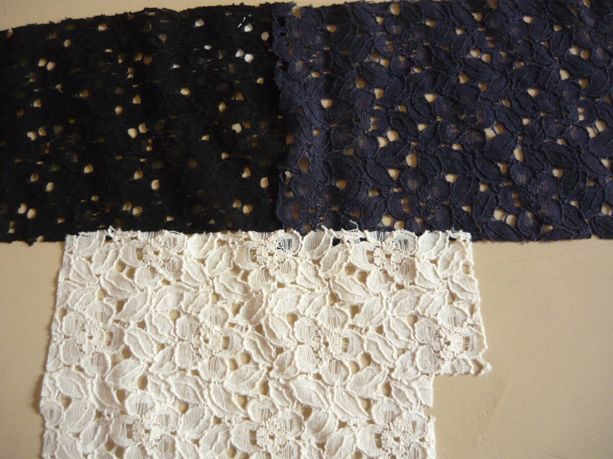 小さなハギレ*レース*花柄*オフホワイト、黒、紺*3枚
