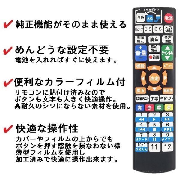 | 【商品名】 曲面テレビ用 06-IRPT53-URC311 代替リモコン 【対応機種】 画像1枚目左側のリモコンが付属する機種に使用出来ます。 レボリューション ジョワイユ ヤマダ ドンキホーテ 等の一部機種に対応。 質問欄よりテレビ本体型番をお知らせいただければ対応可否をお調べしますので、 不明な場合は必ず落札の前にお知らせください。 24TVS-BK 24TVSHD-BK 24TVPVR184 24TVS-WH 24TVSHD-WH 24TVW 24TVWHD JOY-24VHD184 32TVS 32TVSHD 32TVSPVR 32TVPVR184 32TVW 32TVWHD 32TVWPVR JOY-32VHD184 40TVW 40TVWHD JOY-40VHD184 43TVW 43TVWHD JOY-43VHD184 JOY-43TV4KUHD 48TVW 48TVWHD JOY-CB48TV JOY-48TVMHL JOY-CB48MHLTV JOY-48TVS 49TVW 49TVWHDCV JOY-49VHD184 55TVW 55TVWHDCV 等 【商品について】 右側の代替リモコンが出品物になります。左側のリモコンは見本画像です。 タイトル機種のリモコン信号を入力した、設定不要で使える純正品と同等の代替リモコンです。 リモコン左上のモード切換ボタンにて、各機能のボタンをお使いいただけます。 商品に不具合があった場合は代替品交換かご返金にて対応させて頂きます。 【付属品について】 防水リモコンカバーをお付けします。 ボタン機能を印刷した薄型フィルムはリモコンに貼付け済みです。 乾電池は付属しません。別途ご用意下さい。(単4乾電池×2本) 【発送について】送料無料 迅速発送を心掛けております。土日祝日はお時間を頂く場合ございます。 ポスト投函配達となり、日時指定は出来ません。 | ||