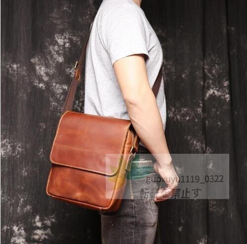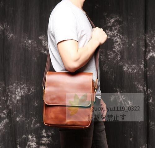 新品★高品質メンズ 本革 レザー ショルダーバッグ 斜め掛けバッグ メッセンジャーバッグ 通勤 通学 無地 斜め掛けバッグ 牛革 肩掛け鞄