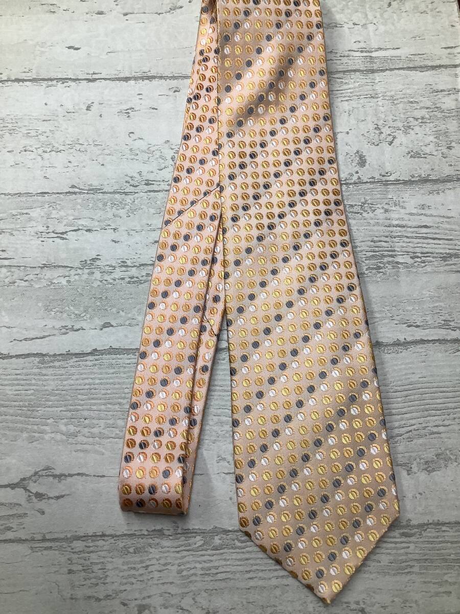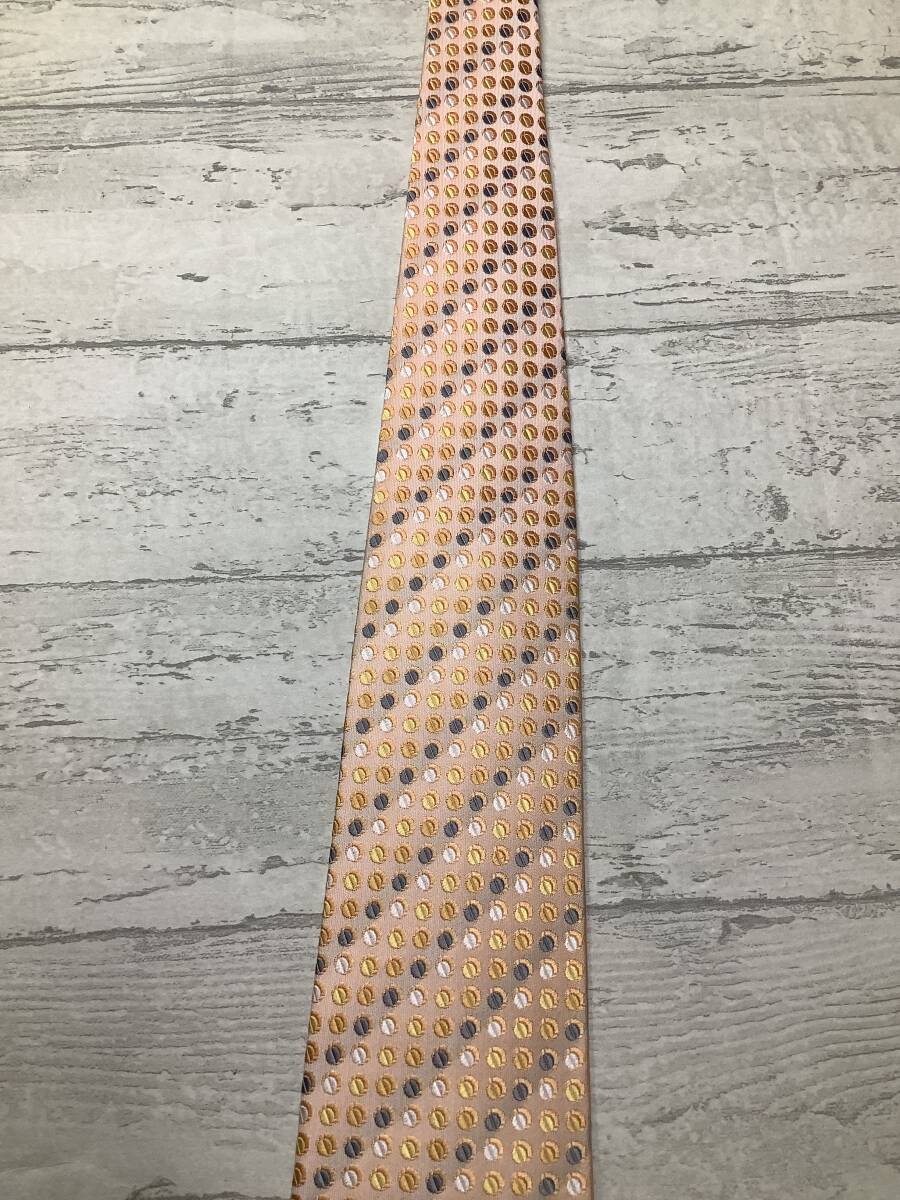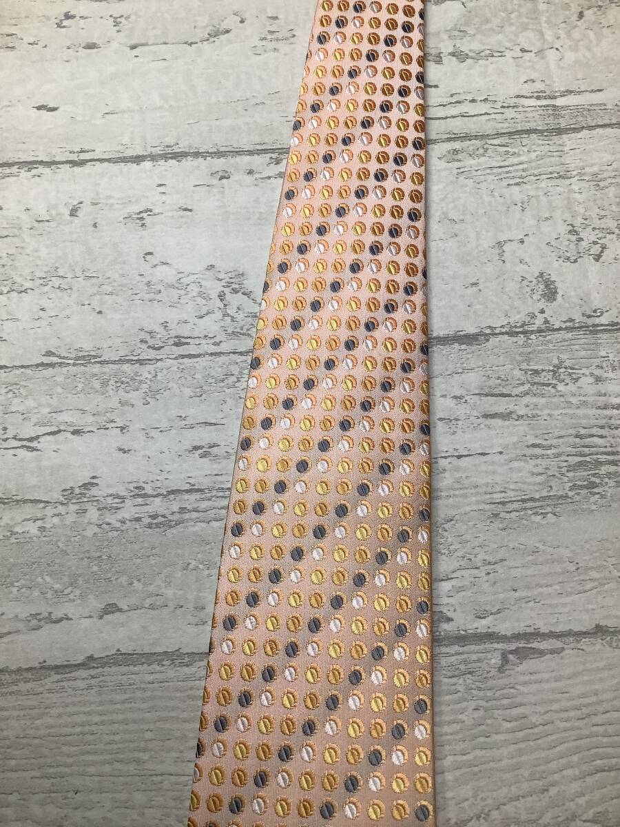 新品訳あり処分★ 日本製ネクタイ オレンジベース小柄総柄★ シルク100%お買い得サービス 薄い芯使用