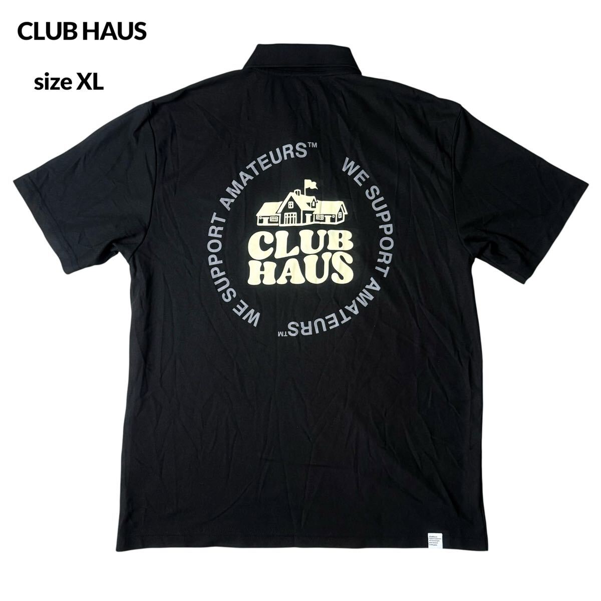 極美品 CLUB HAUS クラブハウス 半袖 ポロシャツ サークルロゴ プリント 黒 ブラック GOLF ゴルフ ウェア サイズ XL