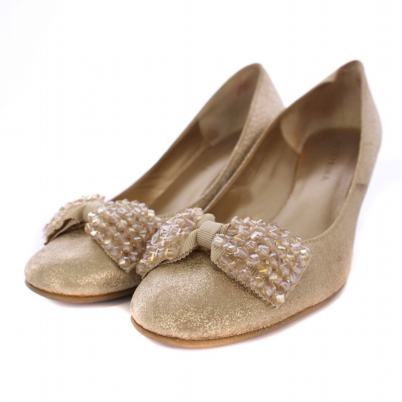 アンテプリマ ANTEPRIMA パンプス ウェッジソール リボン ビジュー装飾 23.5cm ベージュ /BM レディース