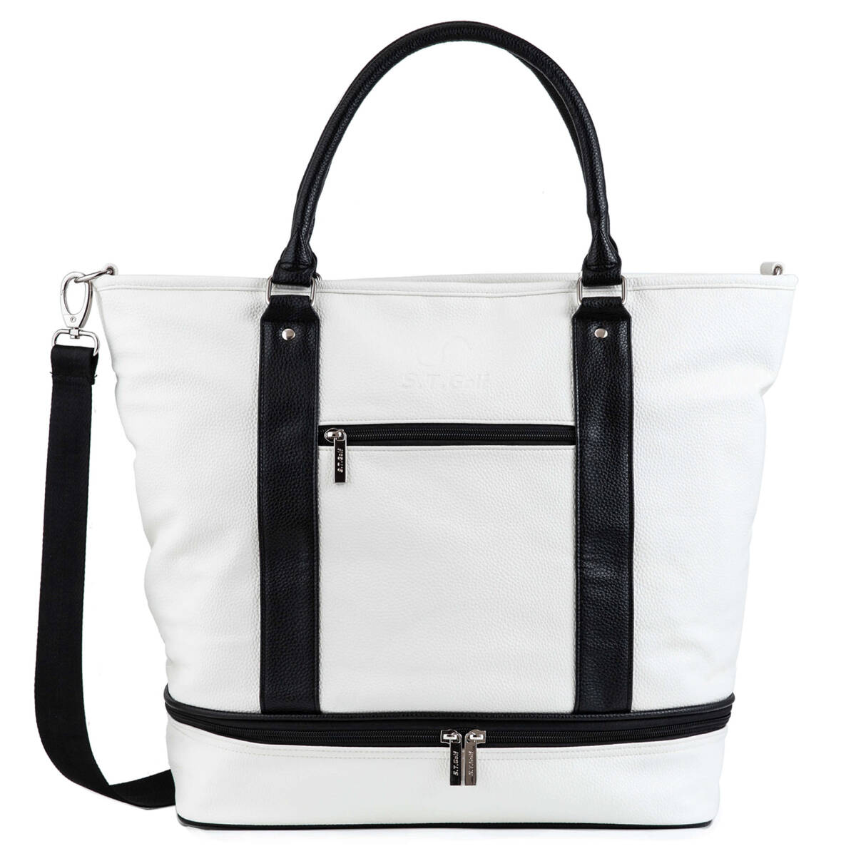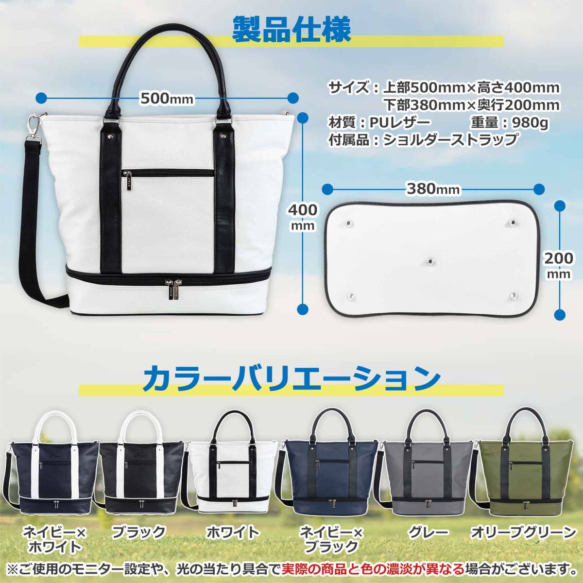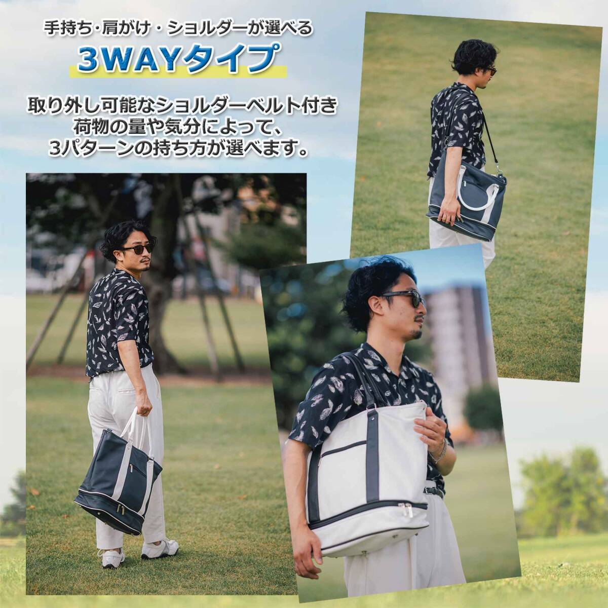 ゴルフ トートバッグ メンズ 高級PUレザー 大容量 シューズ収納可 3WAY 型押しロゴ ショルダーストラップ付属 防水 ホワイト | |||