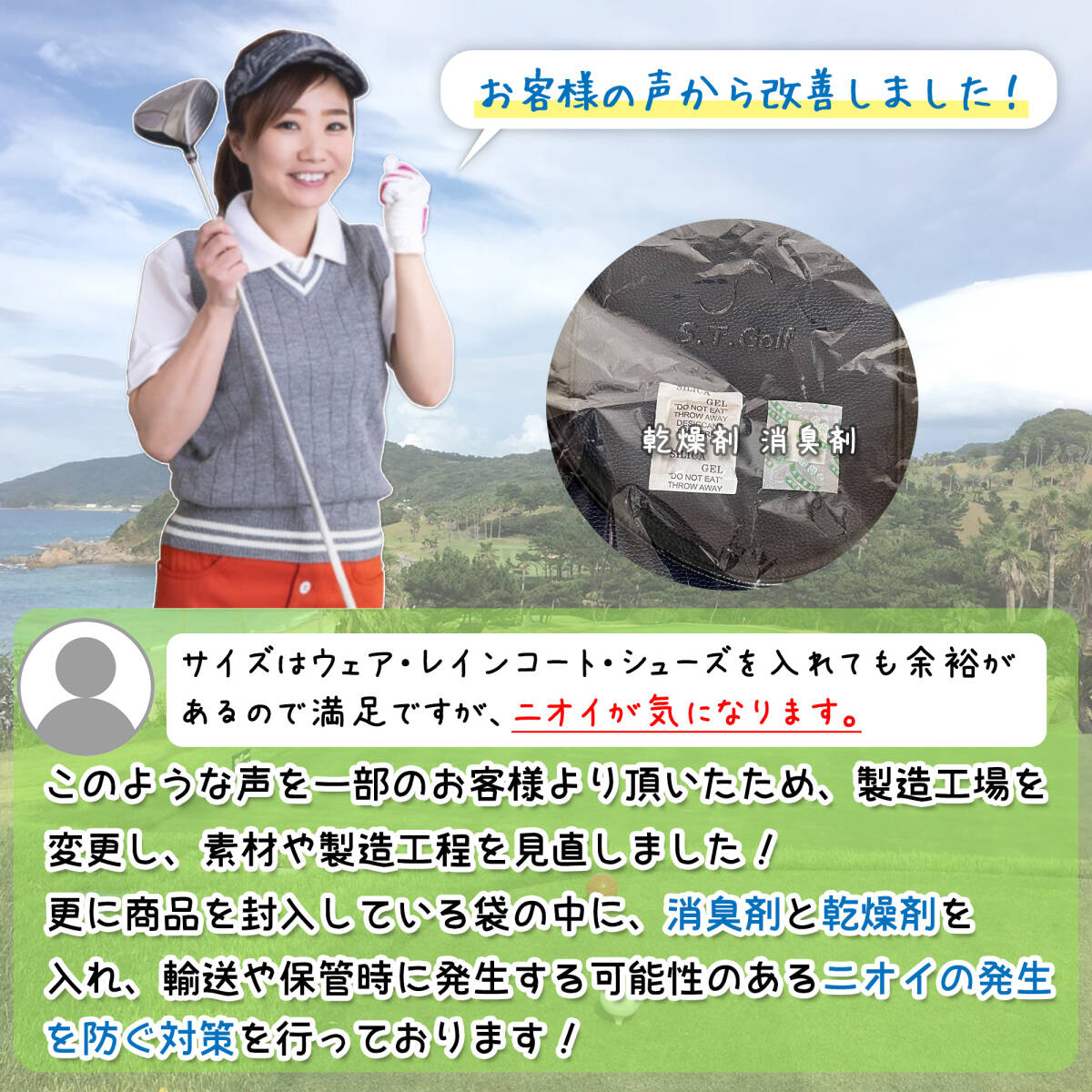 | 【お客様の声にお答えしました!気になるニオイを徹底改善!】「届いた時にニオイが気になった。」というお客様の声を受け、製造工場を見直し、素材と製造工程を徹底的に再検証。さらに、商品を封入する袋には【消臭剤】と【乾燥剤】を同封し、輸送中や保管時に発生しうるニオイの心配をなくしました。お客様に安心してお使いいただけるよう、品質向上に努めております。 【妥協なき高級感】S.T.Golfのゴルフトートバッグは「本当に自分が使いたいと思えるもの」を追求した開発者の情熱から生まれました。数多くの生地を吟味し、選び抜かれたのはハイブランドでも採用されるPUレザー。また、主張しすぎない型押しロゴが、洗練された大人の印象を与えます。手に吸い付くようなマット調の持ち手は、エナメルのような滑りやすさを解消し、快適なグリップ感を実現。ゴルフ場での使いやすさを考慮し、底面には汚れを防ぐ鋲を装着しました。細部にまでこだわり抜いた、ワンランク上の高級感をお楽しみください。 【余裕のある収納力】ラウンドに必要な着替えや飲み物はもちろん、冬場の厚手のアウターや雨具も余裕で収納できる大容量設計。もう荷物の多さに困ることはありません。シューズ収納部分は高さ80mmのゆったり設計。大きめのゴルフシューズ(30cmまで確認済み)もスムーズに出し入れ可能です。 【シーンに合わせて持ち方自在】手持ち、肩がけ、そしてショルダー。付属の長さ調節可能なショルダーストラップを使えば、3つのスタイルで持ち運びが可能です。その日の気分や荷物の量に合わせて、最適な持ち方を選べます。 【充実の便利ポケット】バッグ前面に取り付けられたポケットは、すぐに取り出したい小物が収納できるファスナーポケット。メイン収納部にあるオープンポケットは、メイン収納を開けてすぐに取り出せるポケット2つとなります。i-phone Pro Maxサイズもラクラク収納できるサイズです。メイン収納部にあるファスナーポケットは、長財布もラクラク収納できる大きめサイズのポケットとなります。 【製品仕様】サイズ:上部500mm×下部380mm×奥行200mm×高さ400mm 材質:PUレザー(撥水加工) 重量:980g 付属品:ショルダーストラップ ※カラーはご使用のモニター設定や、光の当たり具合で実際の商品と色の濃淡が異なる場合がございます。 | |||