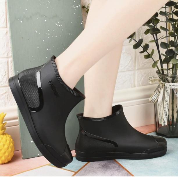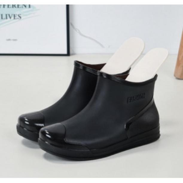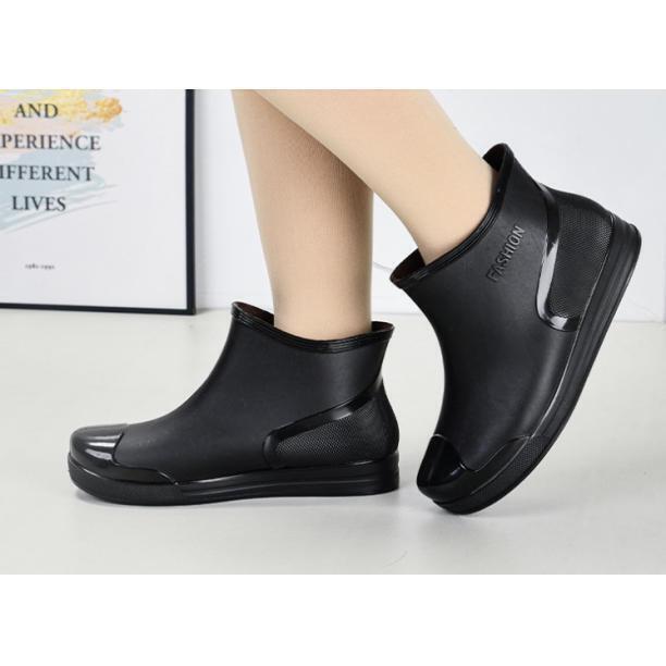 女性用シンプル防水滑り止め中トップレインブーツ、快適なソリッドカラーアウトドア