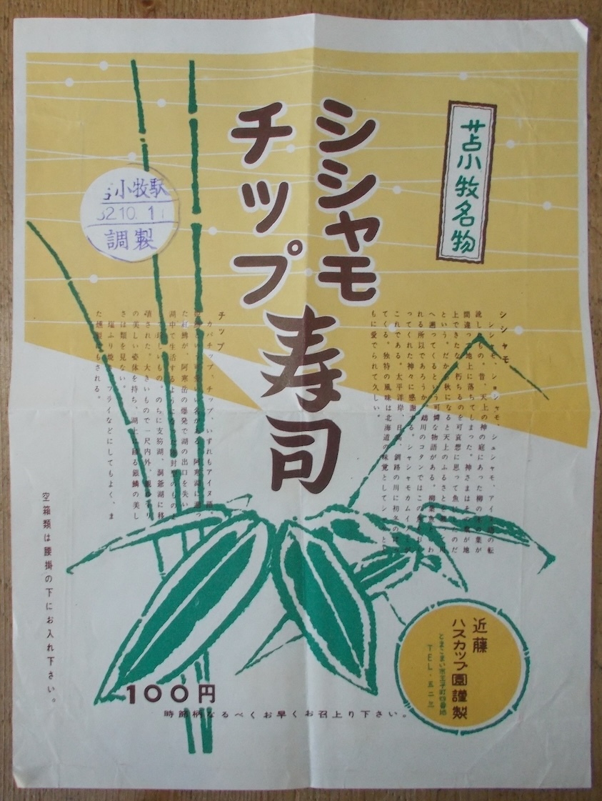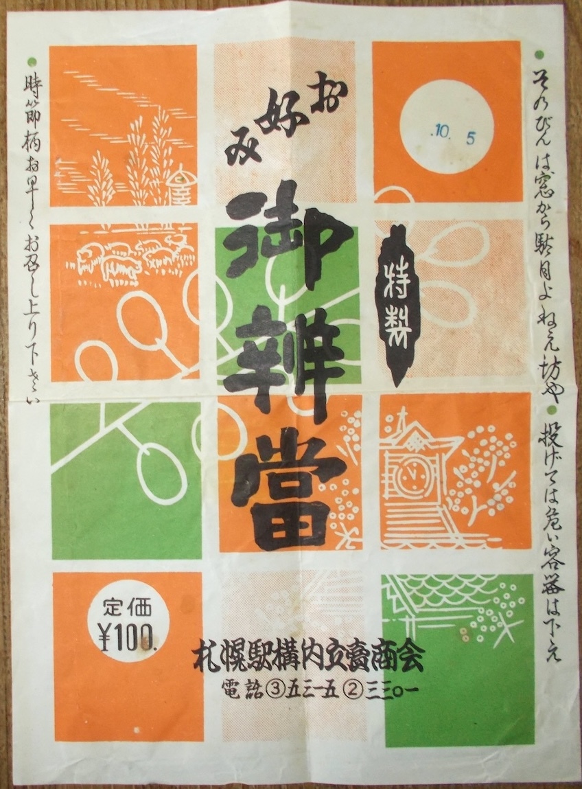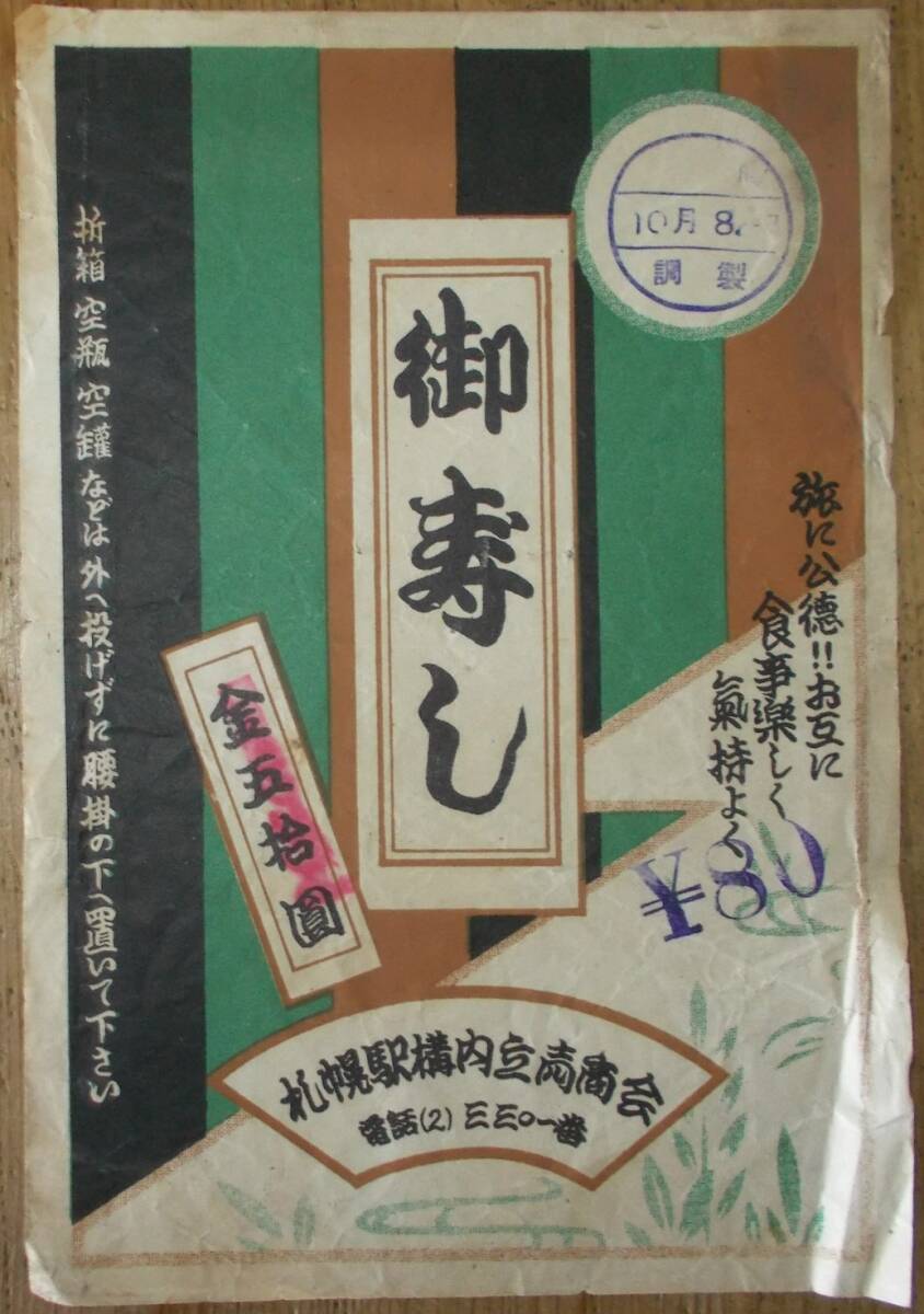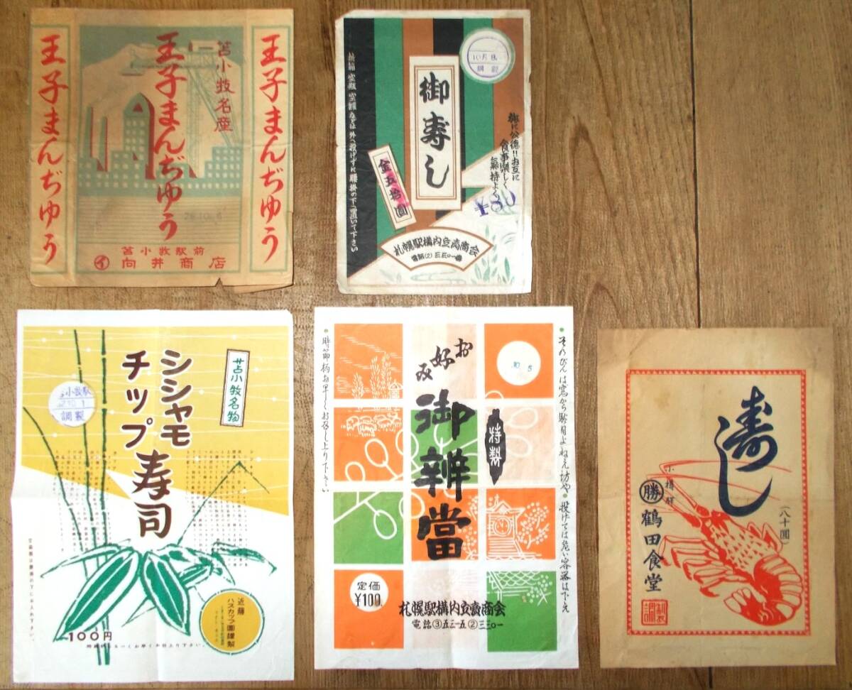 駅弁掛紙-183◆札幌駅・小樽駅・苫小牧沢◆昭和26年◆玉子まんぢゅう・シシャモチップ寿司・御寿し・特製-お好み御辨當◆5枚◆鉄道