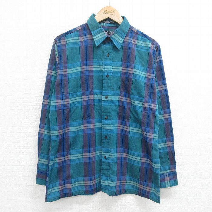 【商品名】 L★古着 バンヒューセン 長袖 シャツ メンズ 90年代 90s 緑他 チェック