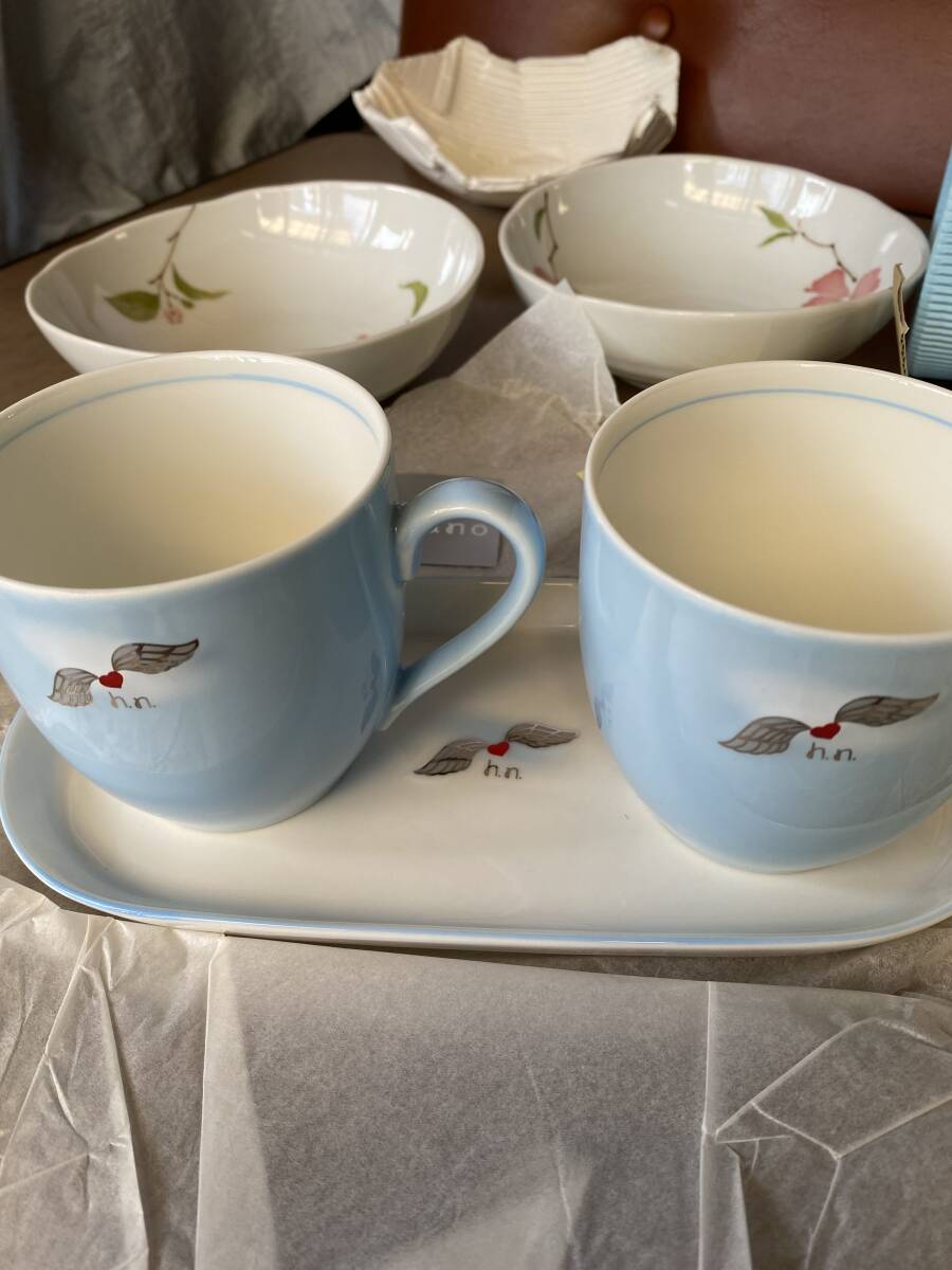 たち吉の皿の直径は16cm カップの直径は8cmです。