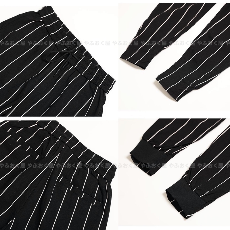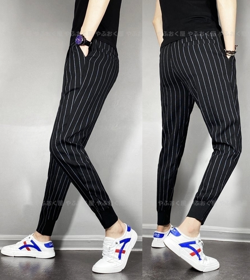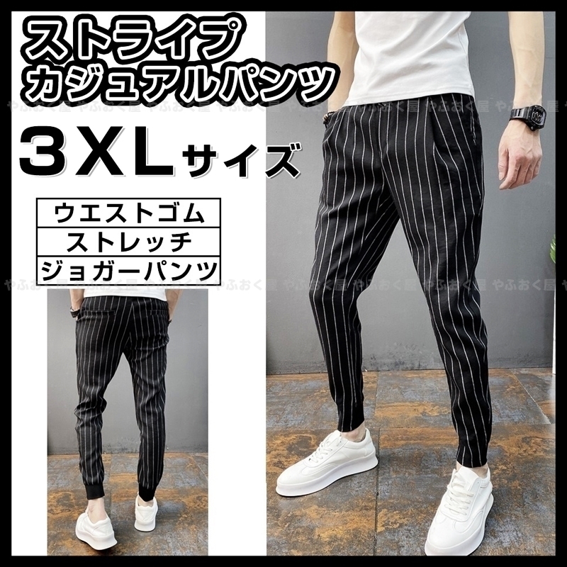 ストライプ カジュアル パンツ ストレッチ ジョガー ウエストゴム ブラック 3XLサイズ メンズ レディース スリムパンツ 黒