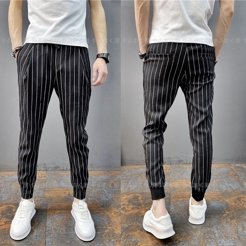 商品説明ストライプ カジュアル パンツ ストレッチ ジョガー