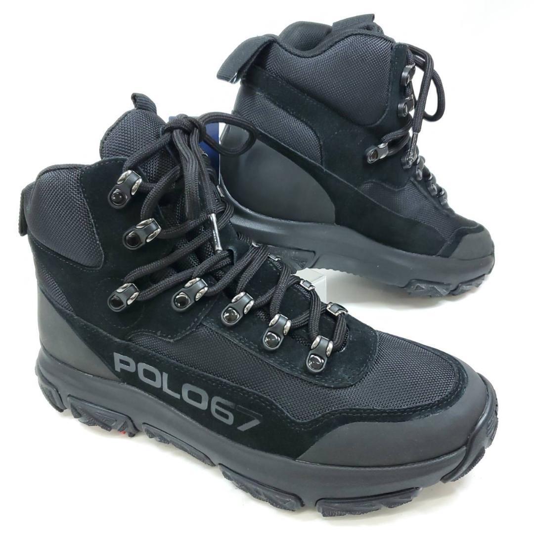 ブラックベースに「POLO67」のロゴがさりげなく映える、無骨でスタイリッシュな一足です。