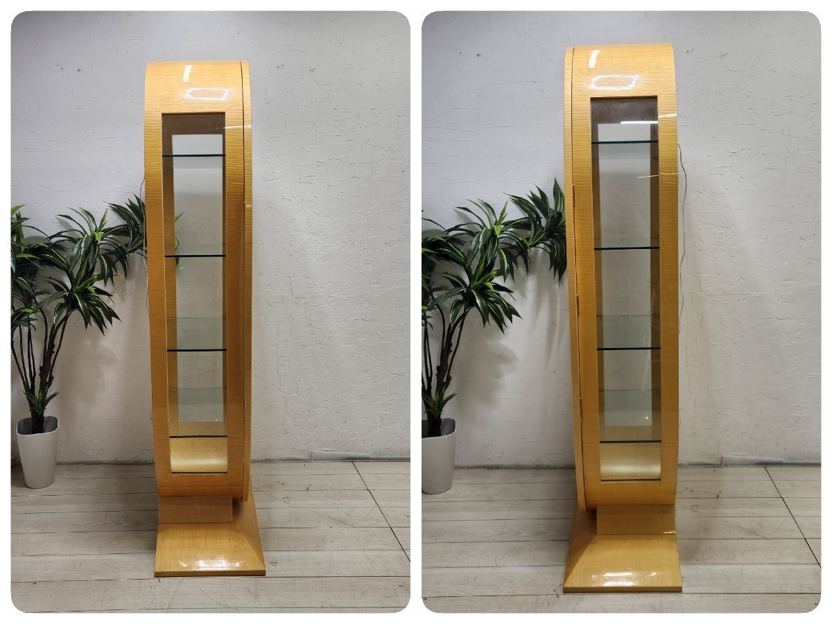 MATUSOU 松創 キュリオケース 飾り棚 キャビネット バーズアイメープル 照明付き 鳥杢目 モダン 収納棚
