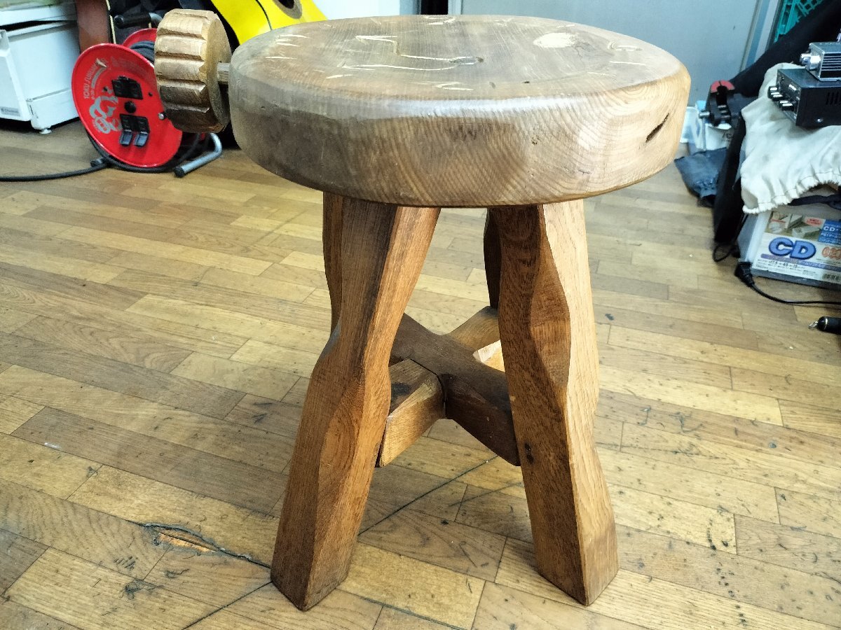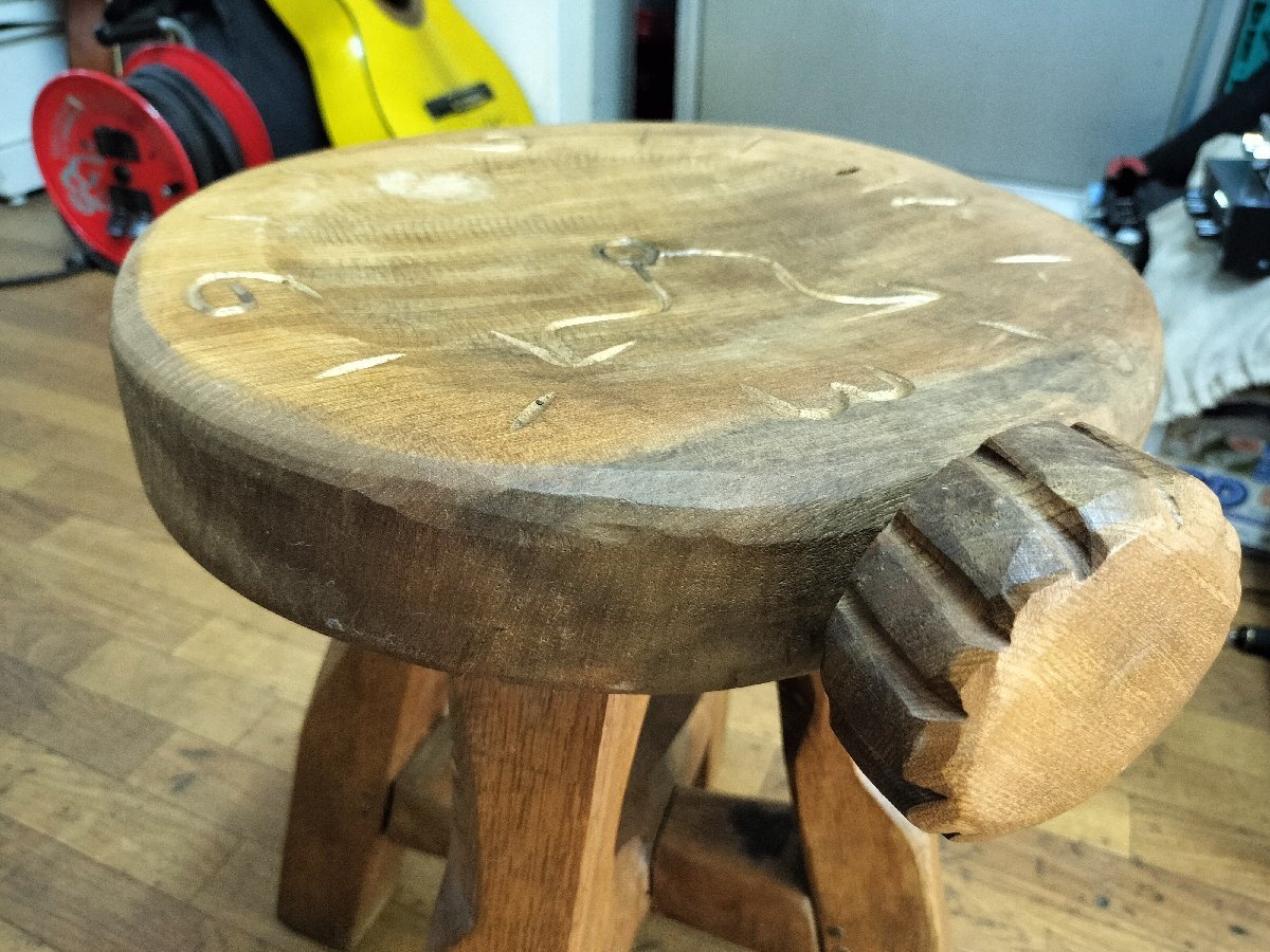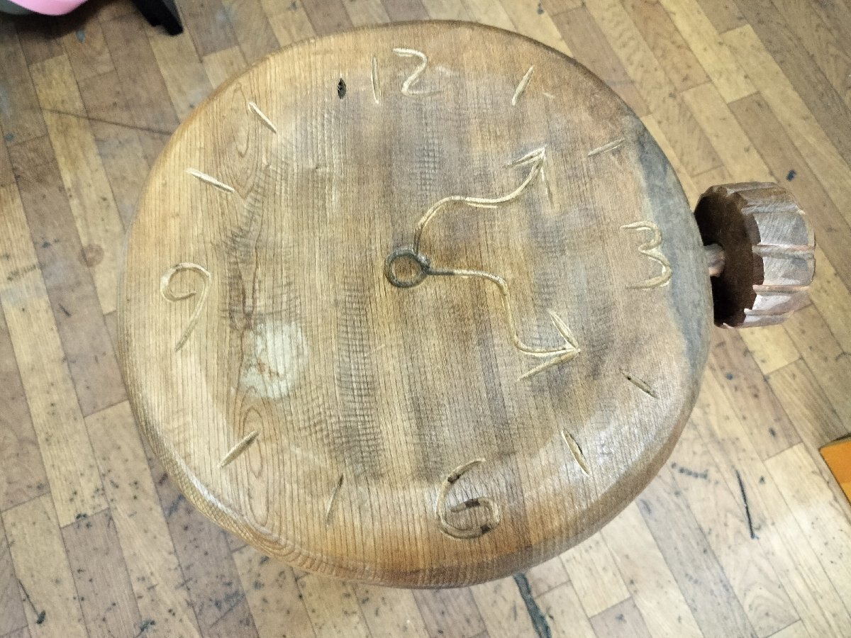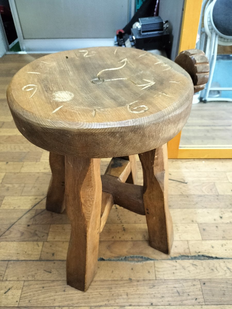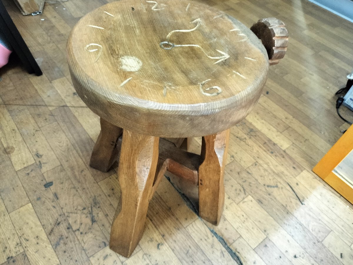 ★時計文字盤モチーフ スツール 丸椅子 アンティーク 天然木 小樽より★