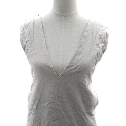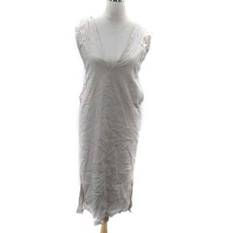 エミ emmi ジャンパースカート ワンピース ロング丈 Vネック リボン 麻 リネン混 1ベージュ /SM1 レディース