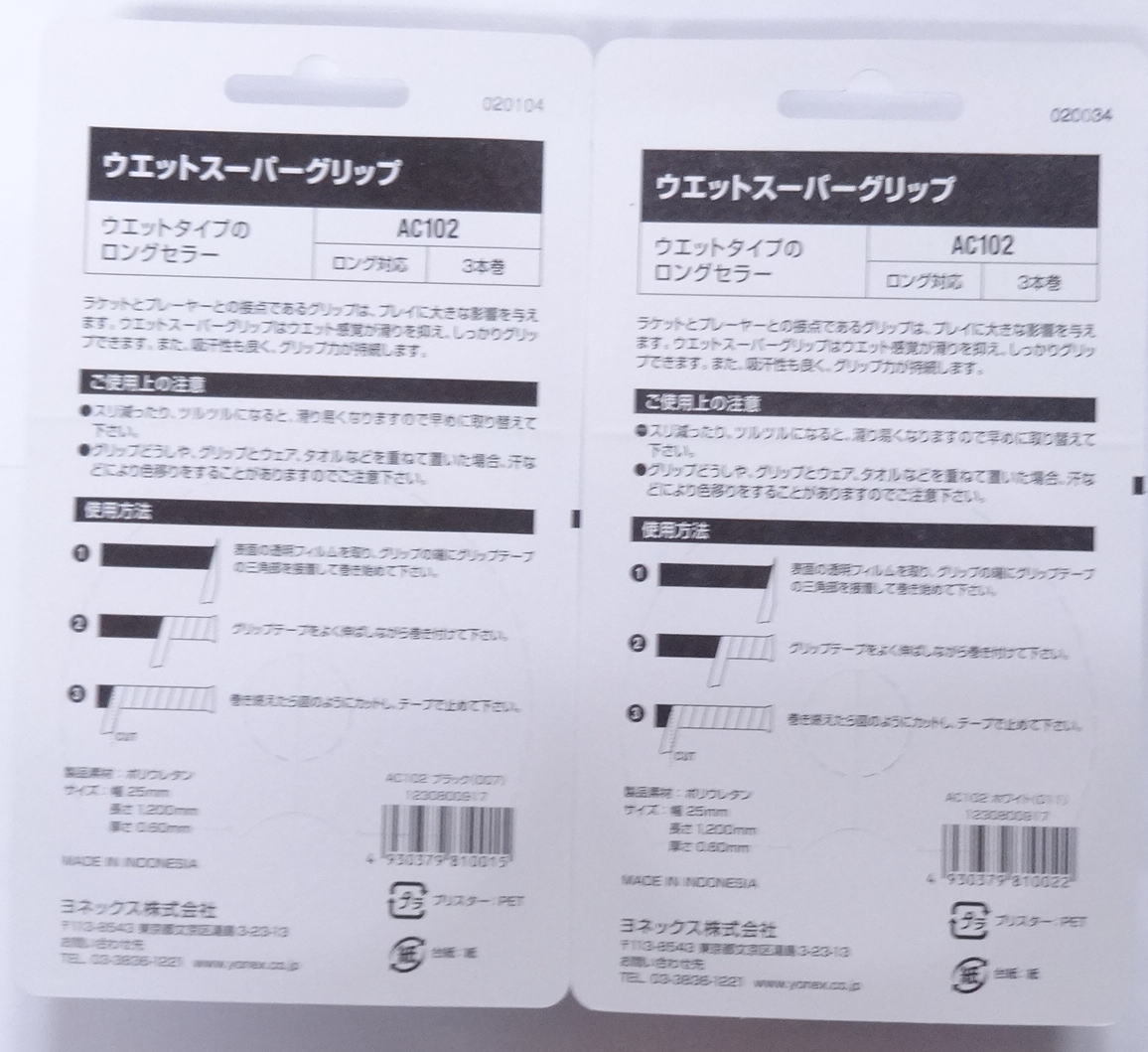 ☆ヨネックス ウェットスーパーグリップ AC102[3本入] ブラックとホワイトのセット