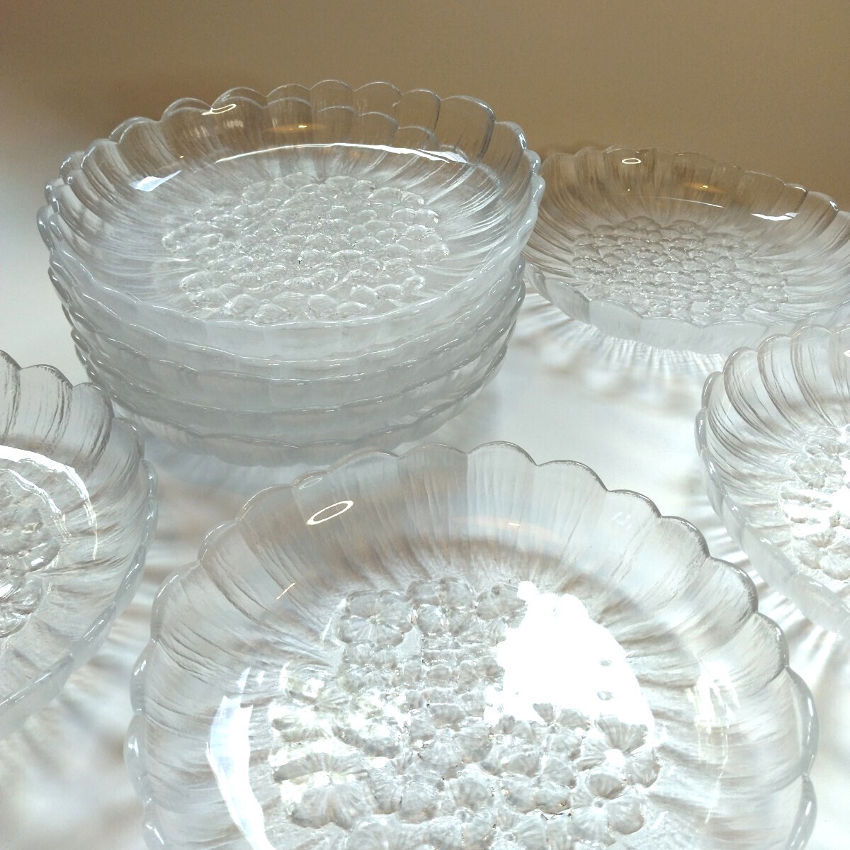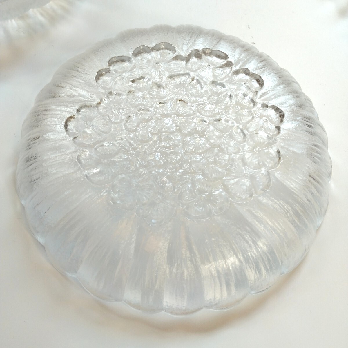 花模様の立体的なデザインのボウルと皿のセット。